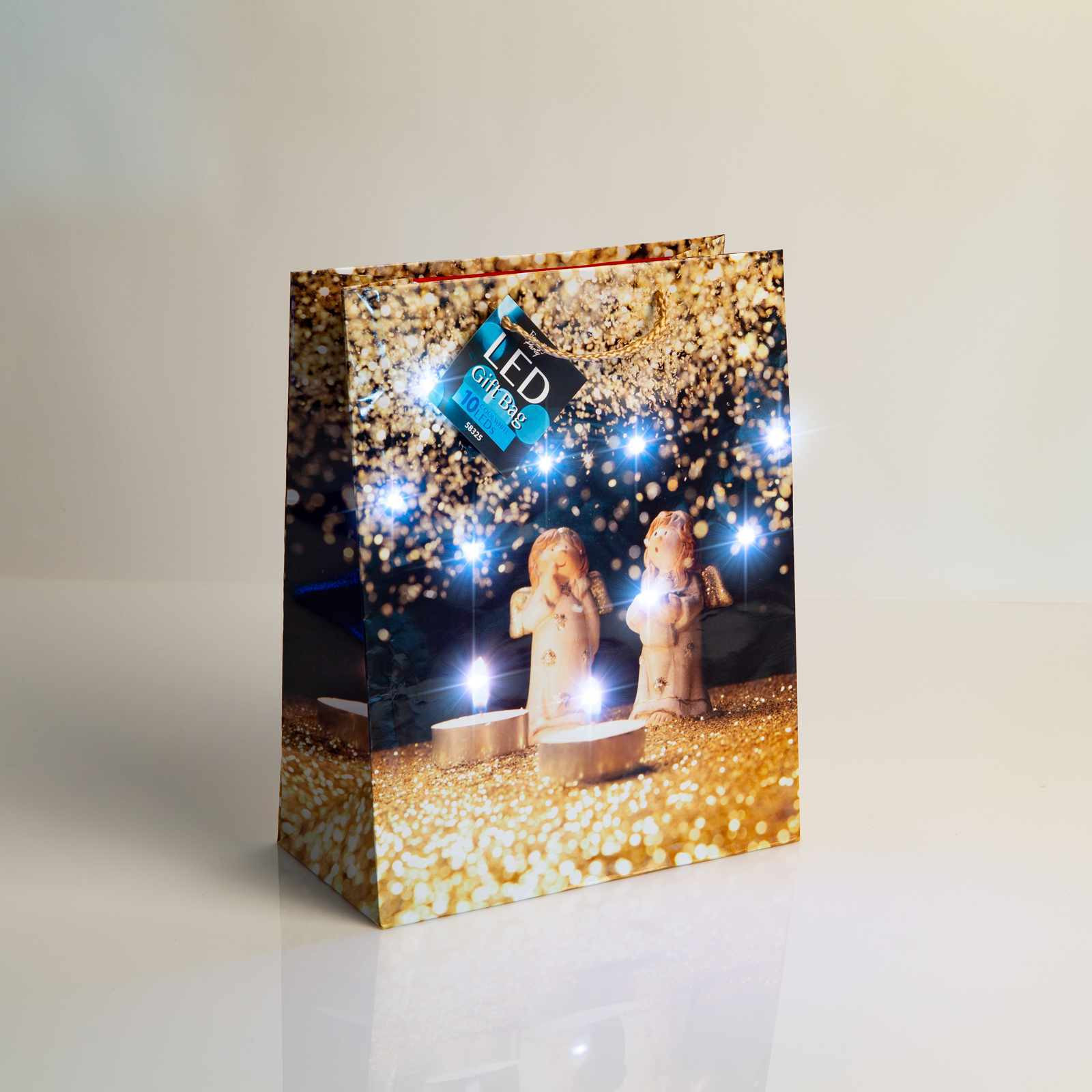 Fedezze fel az ajándékozás új dimenzióját ezzel a különleges LED-es ajándéktasakkal! Ez a stílusos és praktikus tasak nemcsak egyedülálló megjelenést kölcsönöz az ajándékának, hanem varázslatos fényekkel is rendelkezik.Az ajándéktasak oldalát különleges minta díszíti és kiváló minőségű papírból készült, hogy hosszútávon is tökéletesen szolgáljon. A tasakon elhelyezett LED-ek különleges hangulatot teremtenek, melyek energiájáról a beépített elemek gondoskodnak.Ez a praktikus ajándéktasak ideális választás lehet a karácsonyi időszakban, születésnapokon, névnapokon vagy más ünnepi alkalmakkor. Ragyogjon ki a tömegből ezzel az LED-es ajándéktasakkal és legyen a figyelem középpontja minden ünnepi eseményen!