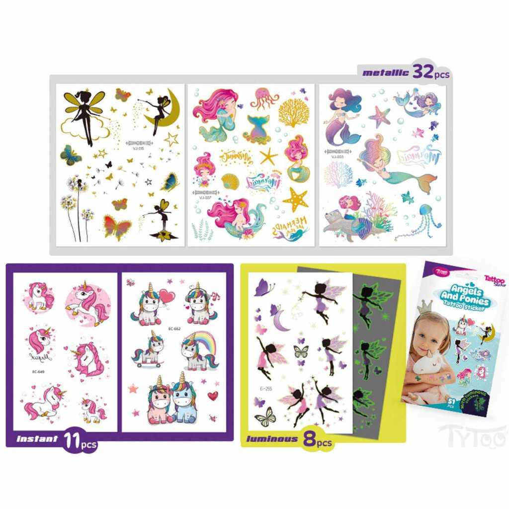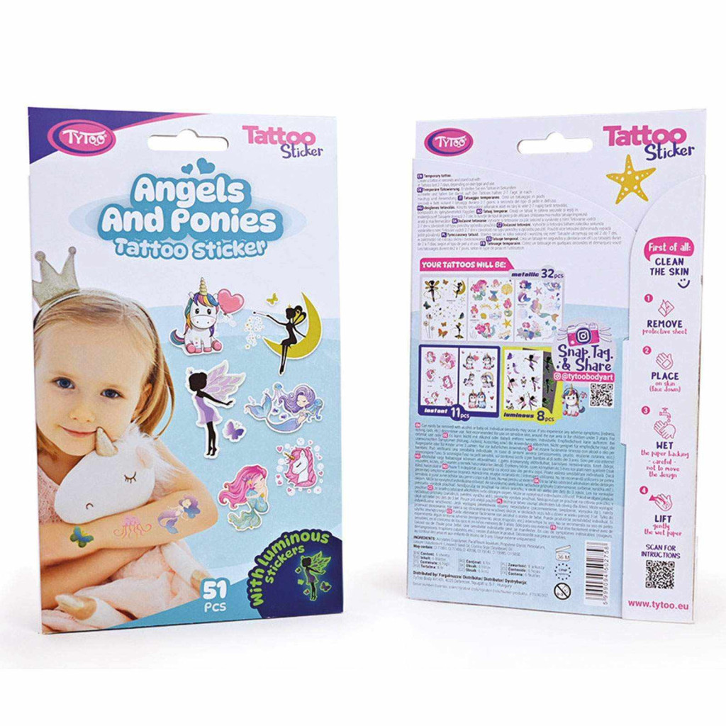 Minden ami Tündér vagy Póni! Könnyen felvihető, egyszerű és látványos tetkók, a legcukibb póni és tündér mintákkal, szettben. Ezek az ideiglenes tetoválás matricák kiváló minőségűek, így hosszabb ideig, napokig is megőrzik élénk színüket és részletgazdagságukat. Könnyen felhelyezhetőek és eltávolíthatóak, anélkül hogy irritálnák vagy károsítanák a bőrt. 51 db tetoválás 6 db íven Tündérek, pónik, hableányok. Világítós és csillogó minták.