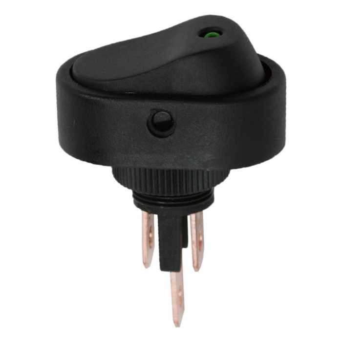 Kapcsoló típusa: SPST Áramerősség: 20 A / 12 V DC Beépítési méret: 12,5 mm Max. panelvastagság: 4 mm Csatlakozók mérete: 6.3 mm Led színe: Zöld Kapcsoló színe: Fekete