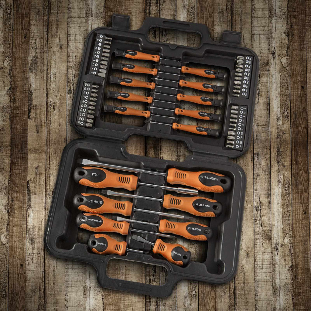 Ezzel a sok darabos csavarhúzó készlettel felülemelkedhet bármilyen problémán, legyen szó akármilyen csavarfejről, ebben a szettben megtalálja a hozzávaló bitfejet. Az ergonomikus, gumírozott markolat megfelelő fogást biztosít. A különböző méretű csavarhúzóknak köszönhetően kis helyeken is könnyen elvégezheti munkáját. A praktikus hordtáska rendezett tárolást és hordozhatóságot biztosít.