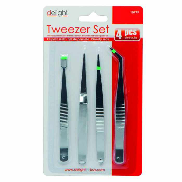 Rozsdamentes acél csipesz szett csúszásmentesítő bordázással. Ajánljuk labormunkák, órás munkák, barkács, modellezés, bélyeg vagy ékszerészeti, elektronikai, szépségipari stb. célú felhasználásra.