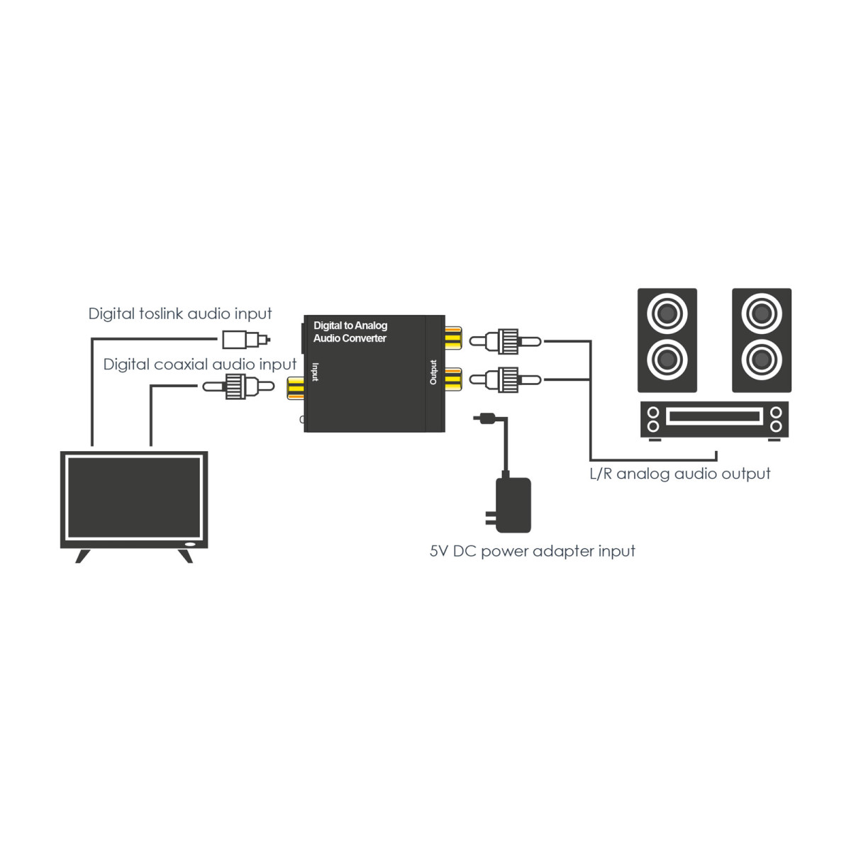 Digitális audio - analóg átalakító, amely képes TOSLINK / S/PDIF vagy koaxiális digitális audio jelet, analóg sztereó jellé alakítani. Ezáltal lehetővé teszi olyan erősítők, keverők vagy vevőkészülékek csatlakoztatását, amelyek nem rendelkeznek elég szabad bemenettel vagy nem képesek fogadni digitális jelcsatlakozót. Az adapter működéséhez külső tápellátás szükséges, melyet a tartozék USB kábel biztosít. Az USB-hez igény esetén használhat 5V-os töltőfejet is, de bármilyen legalább 500 mA-es USB aljathoz csatlakoztatható (számítógép, laptop, tv, erősítő...)