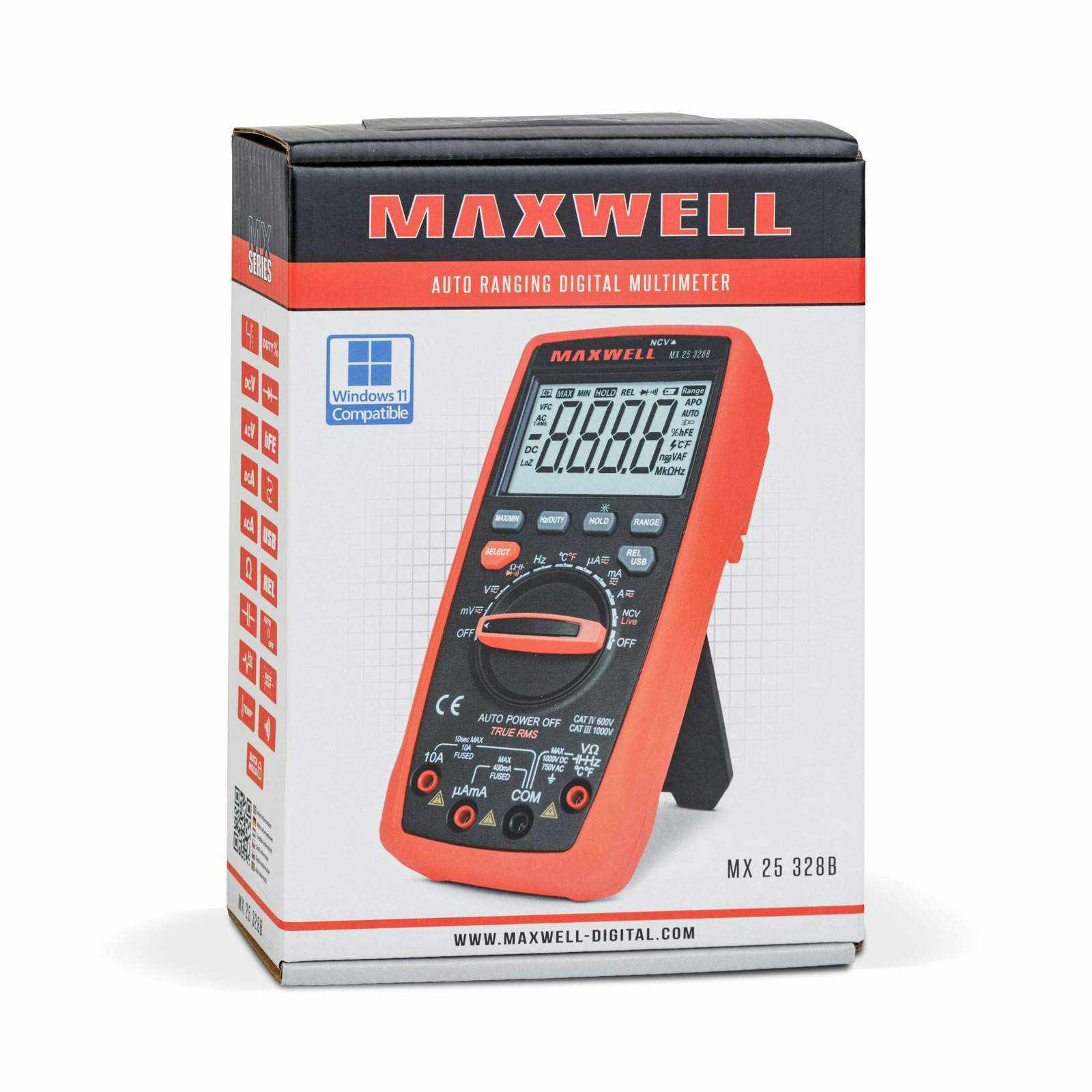 - Tartozékok: Maxwell szoftver, USB kábel, banándugós hőmérőszonda, műszerzsinór, elem (4 x AAA 1,5V)