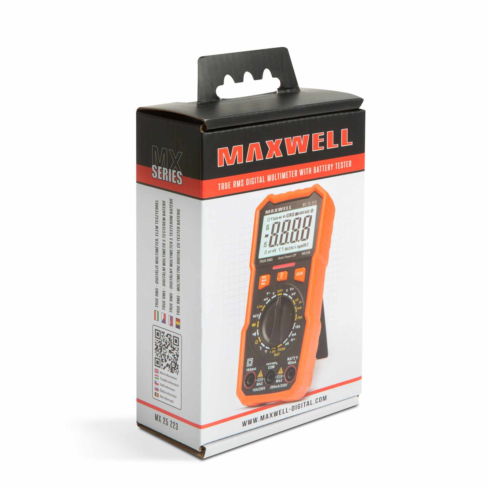 A Maxwell műszerek új MX sorozata a kompakt méretű műszerek kategóriáját erősíti. Alapfunkcióin kívül, munkalámpa funkcióval, elem teszterrel, hőmérsékletméréssel, háttérvilágítással és érintés nélküli feszültség kereséssel van ellátva. A készülék tetején található szenzor segítségével detektálhat feszültséget, anélkül, hogy a megbontaná a kábelezést. Strapabíró készülékháza biztosítja a problémamentes használatot minden körülmények között.