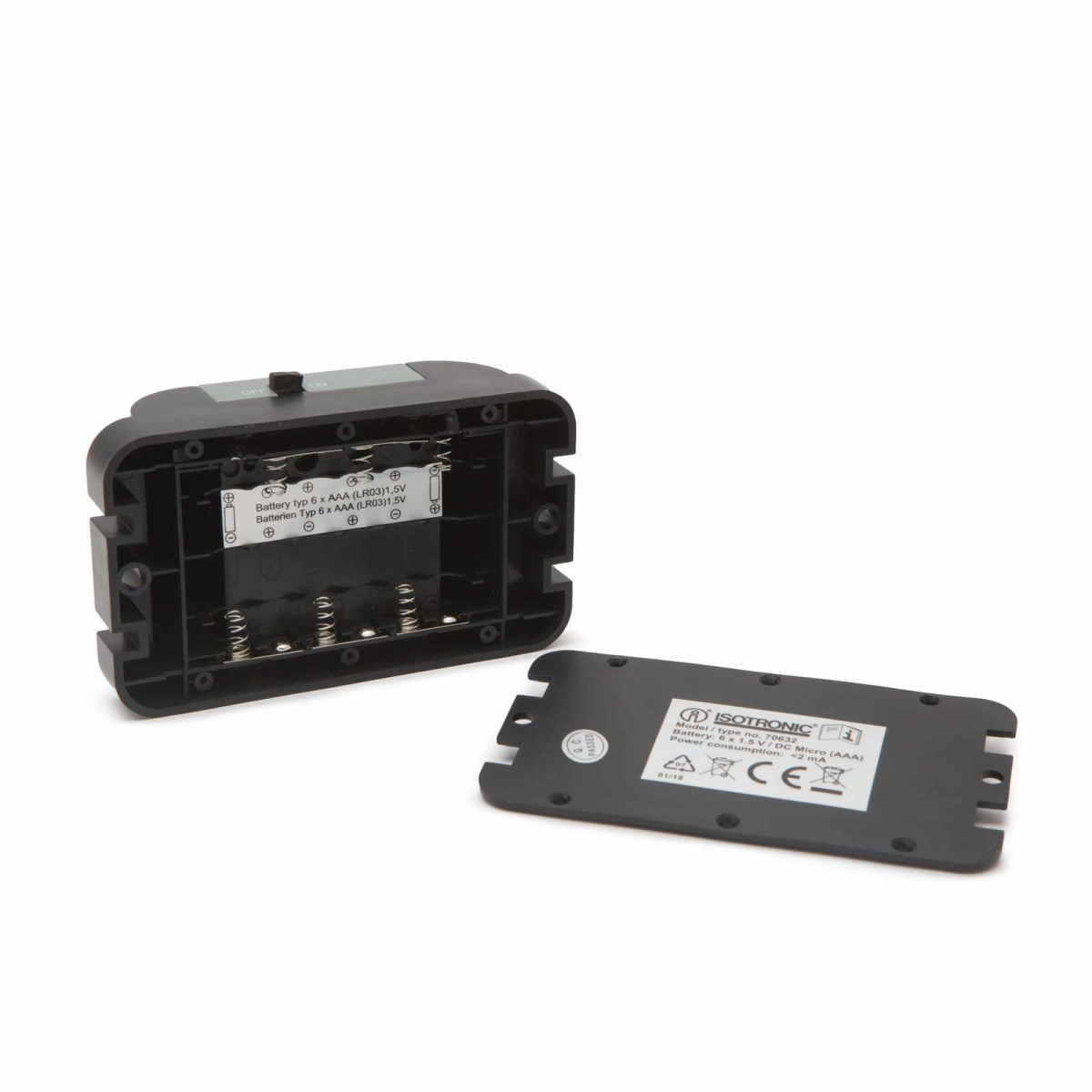Tápfeszültség: 6 x AAA elem (tartozék) Működési idő (teljes kapacitású elem esetén): 12 hónap Hatótávolság: kb. 40 m² Frekvenciatartomány: 12 - 24 kHz / 80 dB Védelmi osztály: IP54 (beltéri, fedett használatra!) Hatásmechanizmus: Elektromos, vegyi anyag nélküli riasztás Méret: 115 x 68 x 33 mm