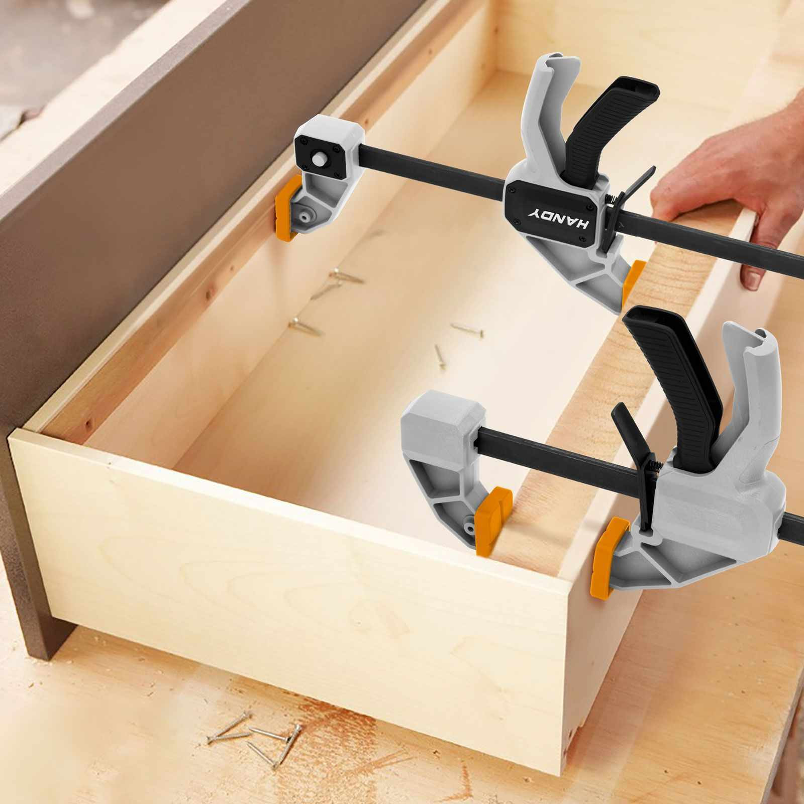 Könnyen használható, egykezes szorító eszköz. Nem hiányozhat egyetlen asztalos, kárpitos üzemből sem, de otthoni barkácsolás során is segítségünkre lehet. Extra szorítóerővel rendelkezik, amely lehetővé teszi a munkadarab stabil rögzítését. Az edzett acél váz nagy teherbírással rendelkezik, így a kar meghúzásával maximalizálhatjuk a szorító-, (vagy a pofák megfordítását követően) feszítőerőt.