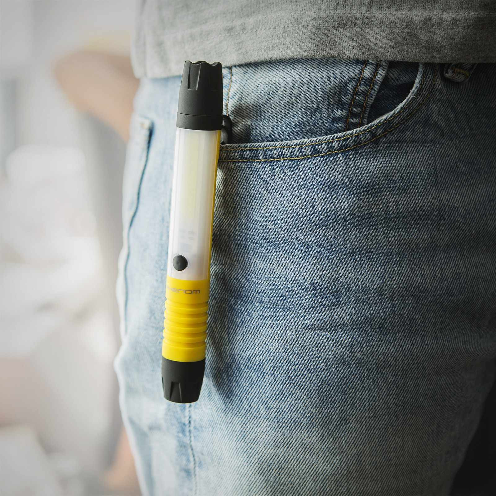 Méret: 17 x 2 cm Fényforrás: COB LED - 200 + 110 lm Áramforrás: 3 db AAA elem (nem tartozék)