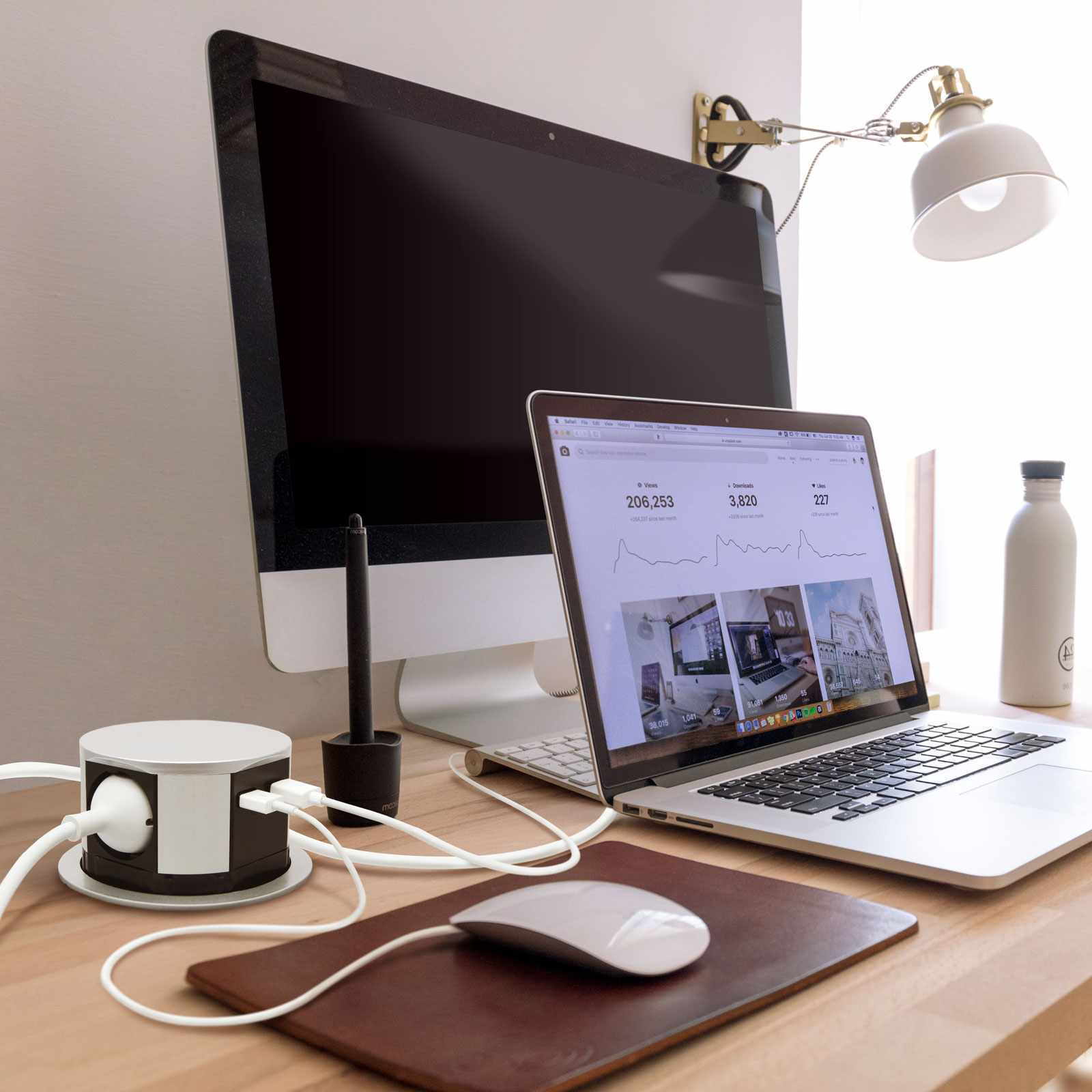 • Süllyeszthető elosztó irodai és otthoni felhasználásra, fém házzal. Asztala, bútora legyen mindig elegáns és rendezett, mégis funkcionális. A beépített Type-C és USB-A csatlakozóknak köszönhetően könnyen töltheti mobil eszközeit. A rejtett elosztó kiváló megoldás lehet ha már például kész konyhával rendelkezik, de nincs elegendő konnektor a kívánt helyen. Ilyenkor falvésés és villamos hálózat bővítés nélkül, remek alternatíva lehet egy rejtett elosztó. Egy mozdulat és máris rendelkezésre áll 3 szabad konnektor. Ideális lehet olyan elektromos eszközökhöz, amit nem folyamatosan használunk, kenyérpirító, vízforraló... Ha használaton kívül vannak, a "töltőoszlop" egy mozdulattal elrejthető, ezzel is megkönnyítve például a takarítást, valamint rendezett, letisztult külsőt ad a helységnek.
