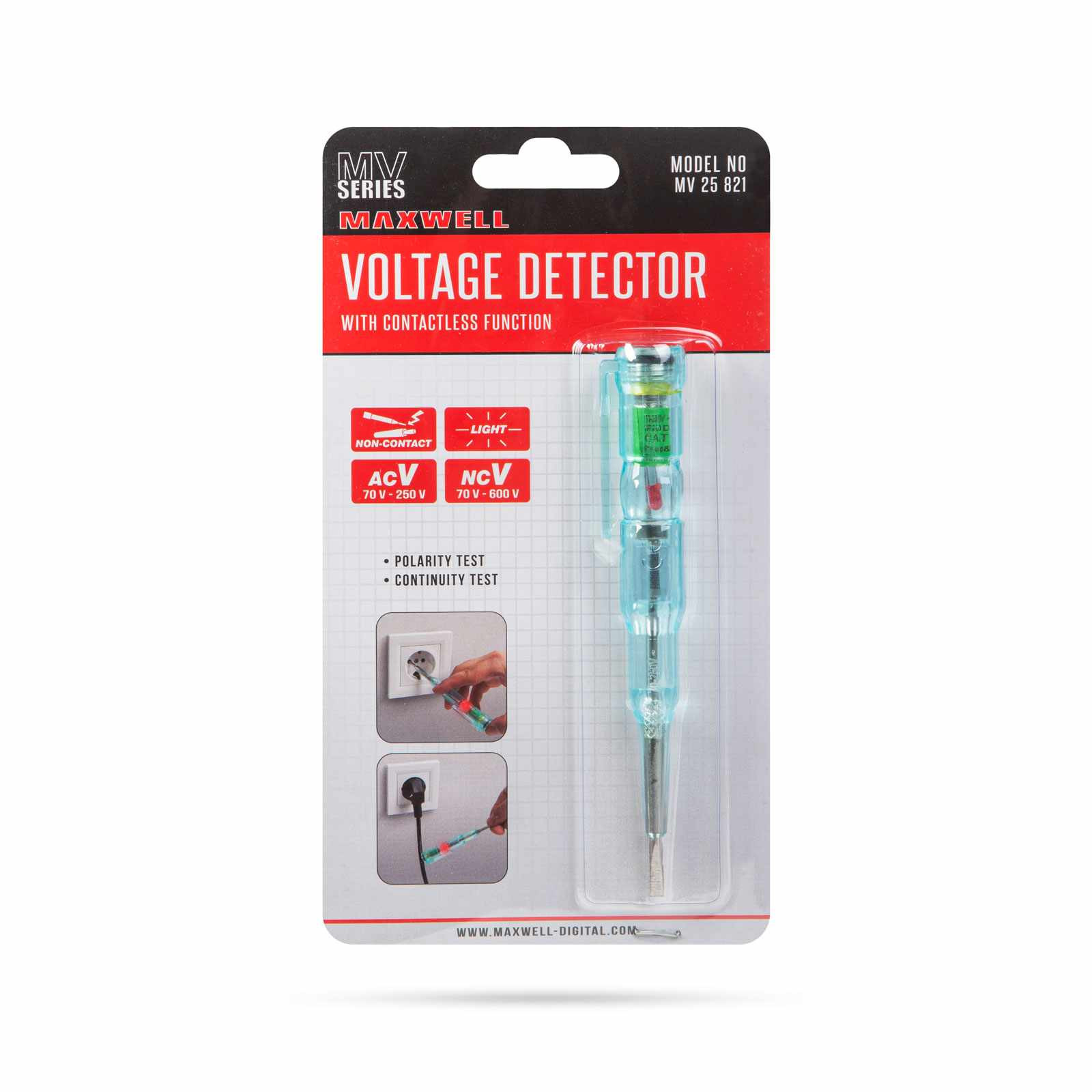 Ötvözi a hagyományos fázisceruza és az érintésmentes feszültség detektorok előnyeit. Hagyományos fázisceruza, amellyel egyszerűen és gyorsan ellenőrizheti, hogy melyik a fázis (élő) kábel. A teszter 70 - 250 V AC közötti feszültség érintéses detektálására alkalmas. Ha a lámpa világít, az fázis (élő) kábel. Ha a lámpa nem világít, a vizsgált kábelen kisebb a feszültség, mint 70 V AC. Érintésmentes tesztelés esetén 70 - 600 V AC-ig alkalmazható. Érintésmentes üzemmódkor használat közben nem érintkezik semelyik felülete fémesen a mérendő felülettel, ezzel az áramütés veszélye minimálisra csökken, így még biztonságosabban állapítható meg a fázis helyzete. A mérési módhoz használja a markolat végén található felületet és figyelje a beépített piros LED lámpát.