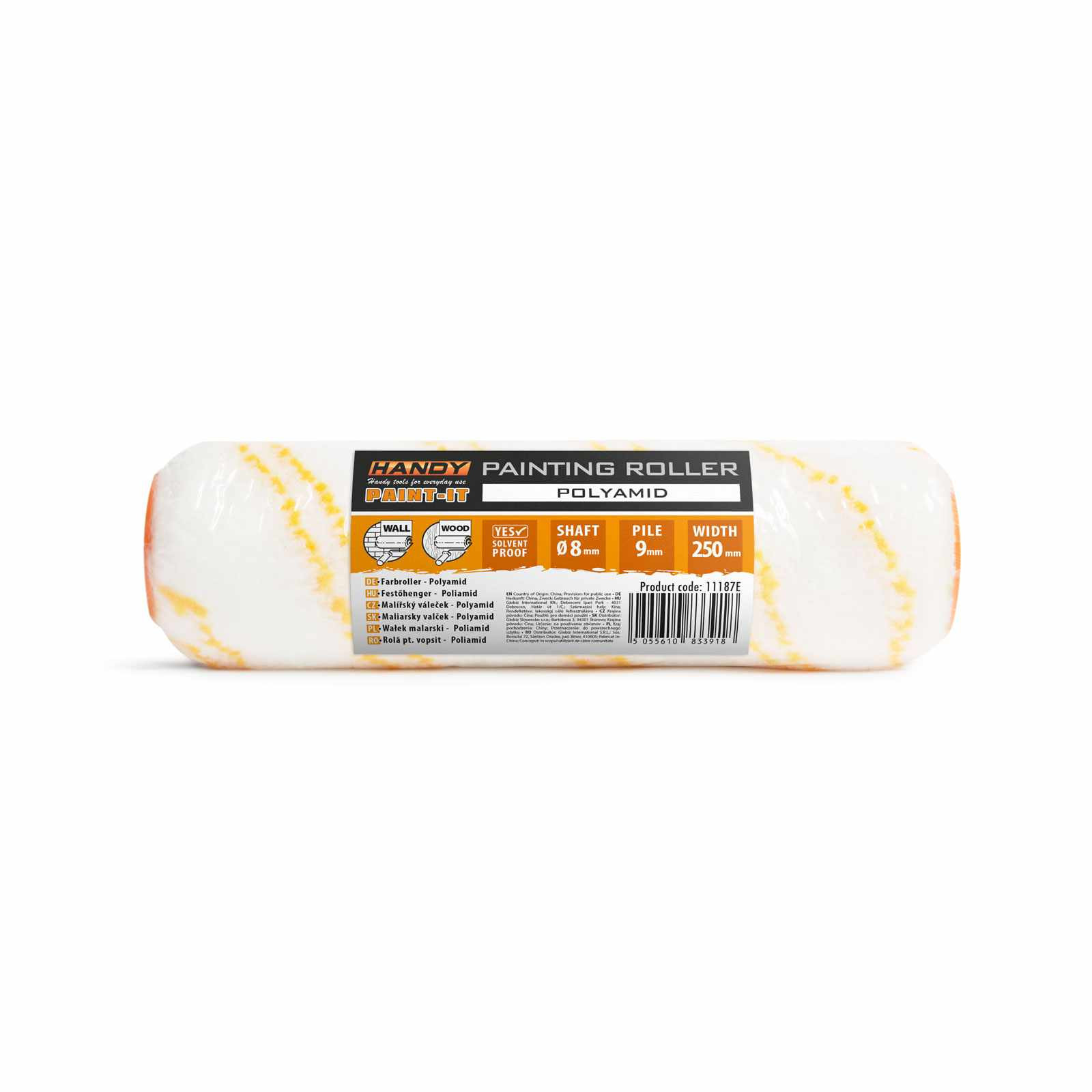 Ajánlott felület: Fal, fa felületek Hengerek száma: 1 db Hengerek szélessége: 250 mm Tengelyátmérő: 8 mm Szálak hossza: 9 mm Anyag súlya: 1000 g / m² Színe: Sárga csíkos