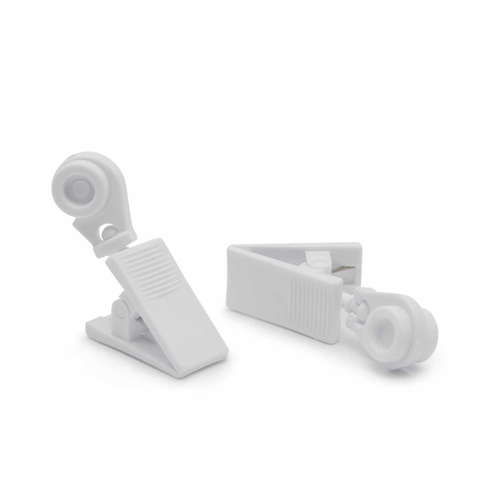 Fehér műanyag díszcsipesz függönyökhöz. A fehér csipesz elegánsá teszi a fehérszín harmóniát. Nem üt el a fehér karnistól vagy a fehér függönytől.Görgős kivitel.