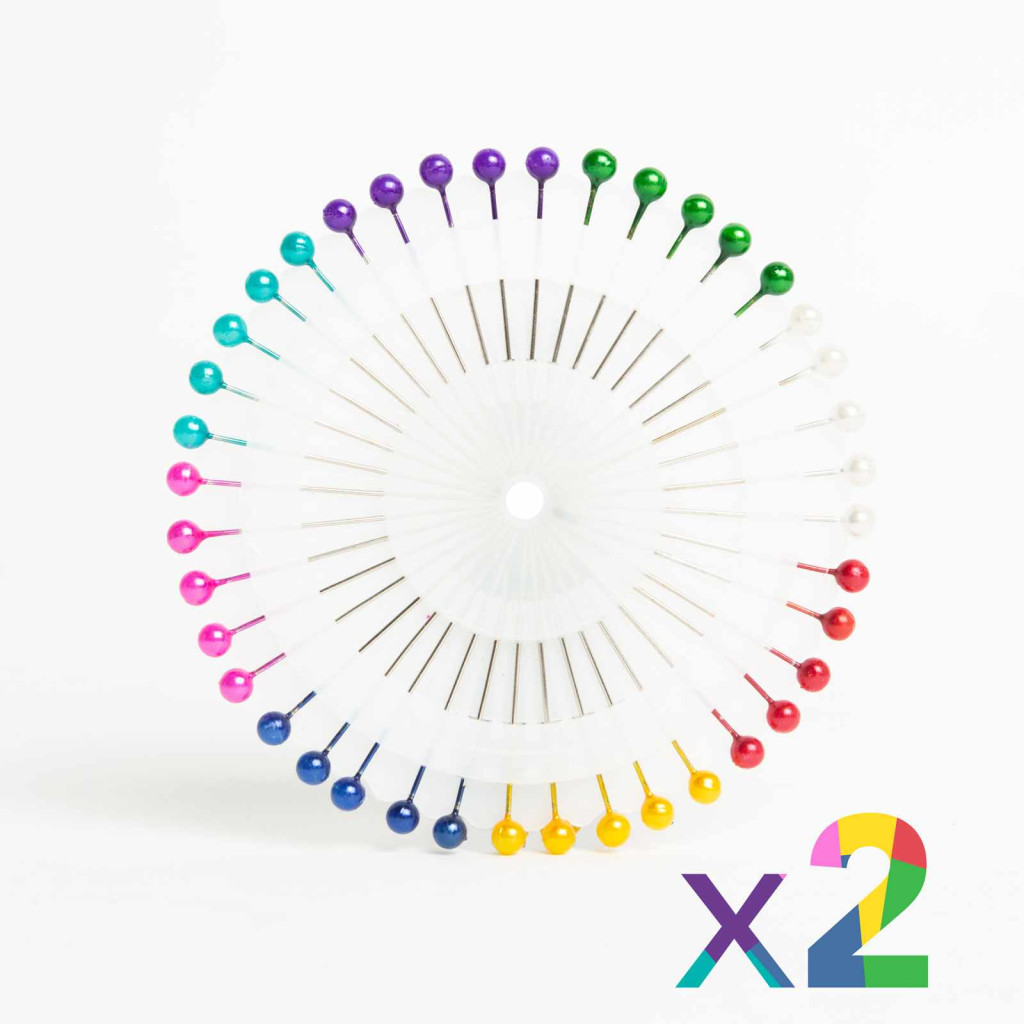 Kerek műanyag fejjel rendelkező gombostű készlet! A szett tartalma két korong összesen 64 db gombostűvel. Minden színből 5 db-ot talál korongonként.