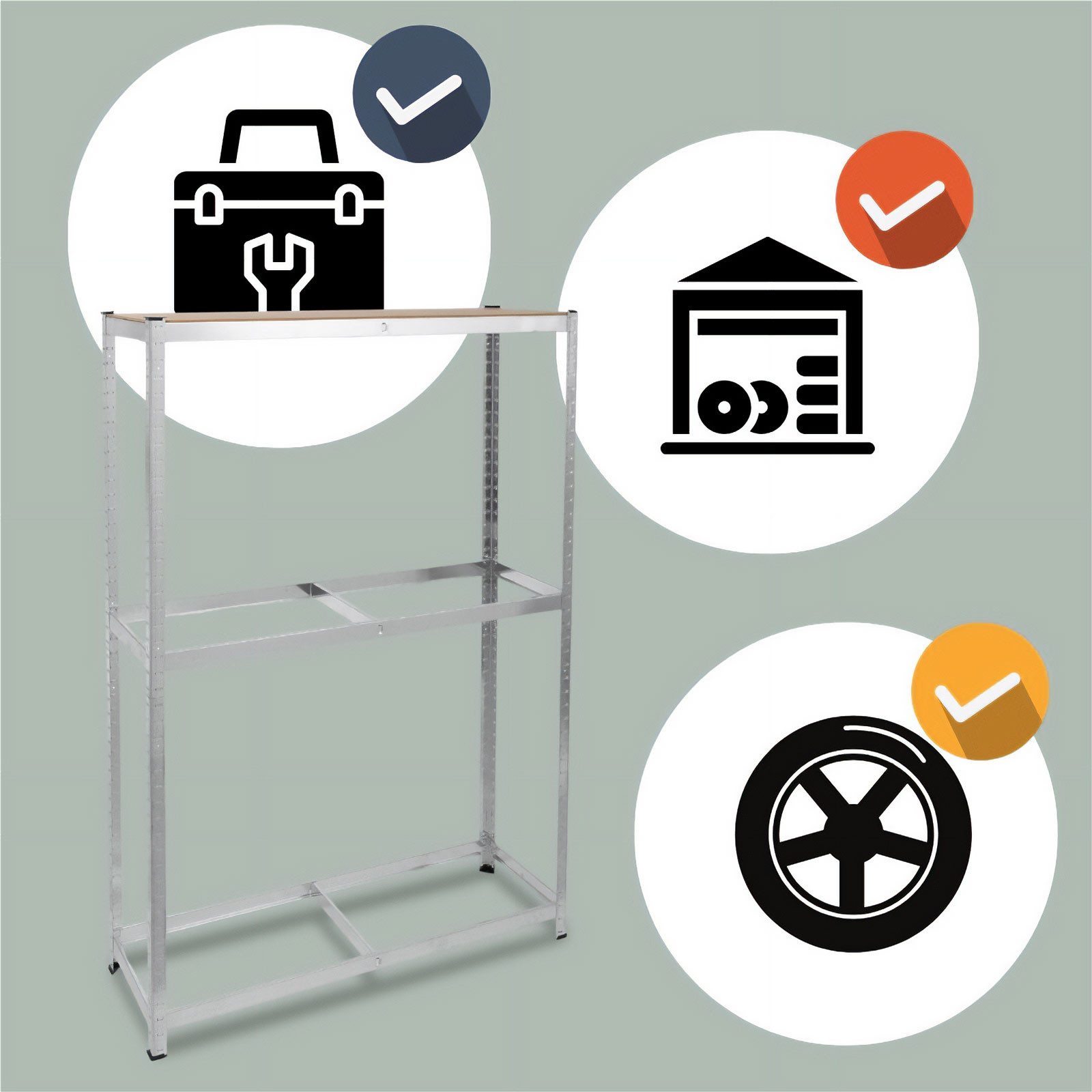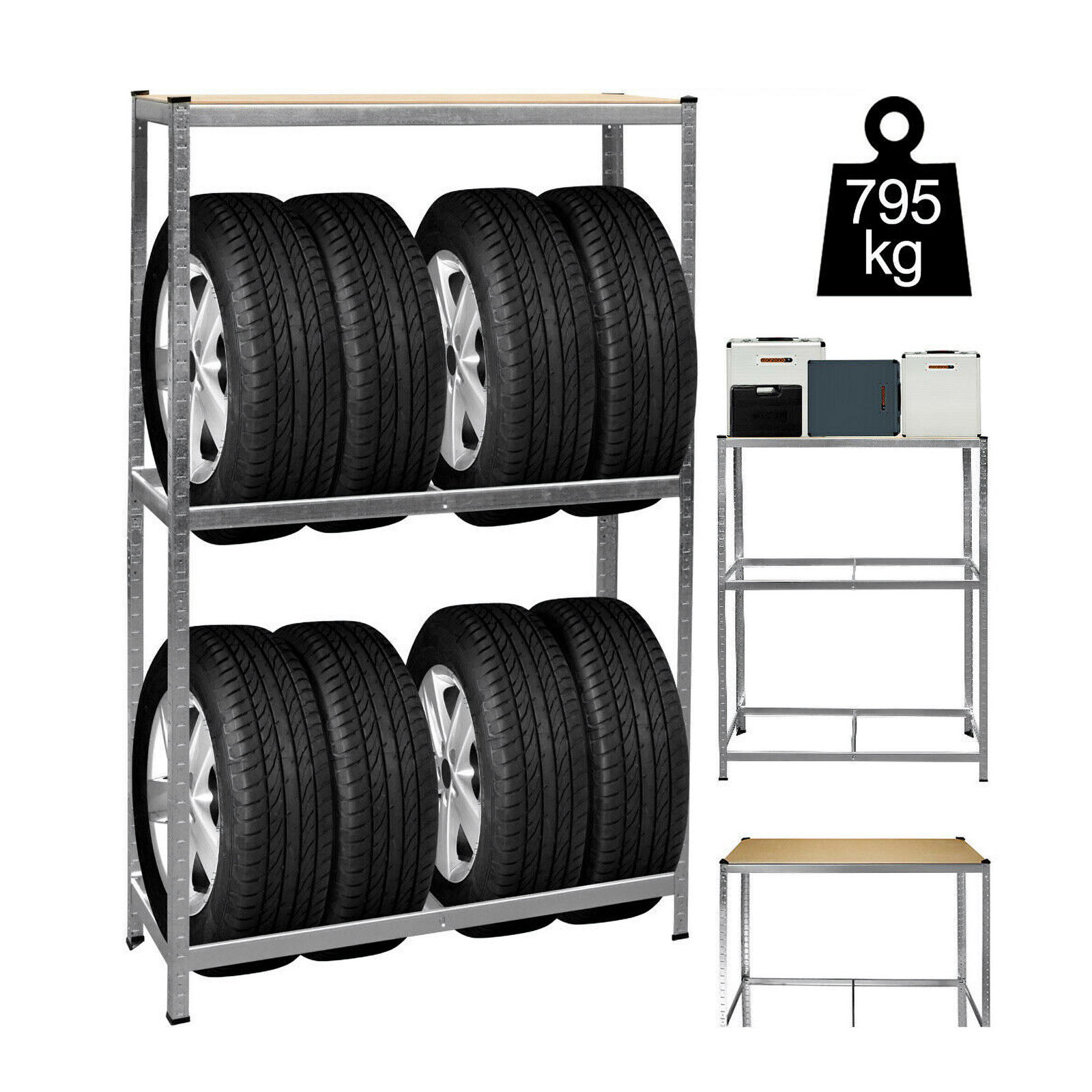 Tárolja rendezetten és biztonságosan a gumiabroncsait ezzel a strapabíró, fémből készült tároló állvánnyal. Az állvány praktikus kialakításának köszönhetően ideális választás garázsokba, műhelyekbe vagy akár raktárakba is.Főbb jellemzők: Stabil és tartós szerkezet: Kiváló minőségű fémből készült, amely hosszú élettartamot és megbízhatóságot biztosít. Tágas tárolókapacitás: Az 180 cm magasság, 120 cm szélesség és 40 cm mélység elegendő helyet nyújt akár több gumiabroncs tárolására is. Kompakt kialakítás: Helytakarékos megoldás, amely segít rendezetten tartani a teret. Egyszerű összeszerelés: Az állvány könnyen összeállítható, az egyértelmű útmutatónak köszönhetően.