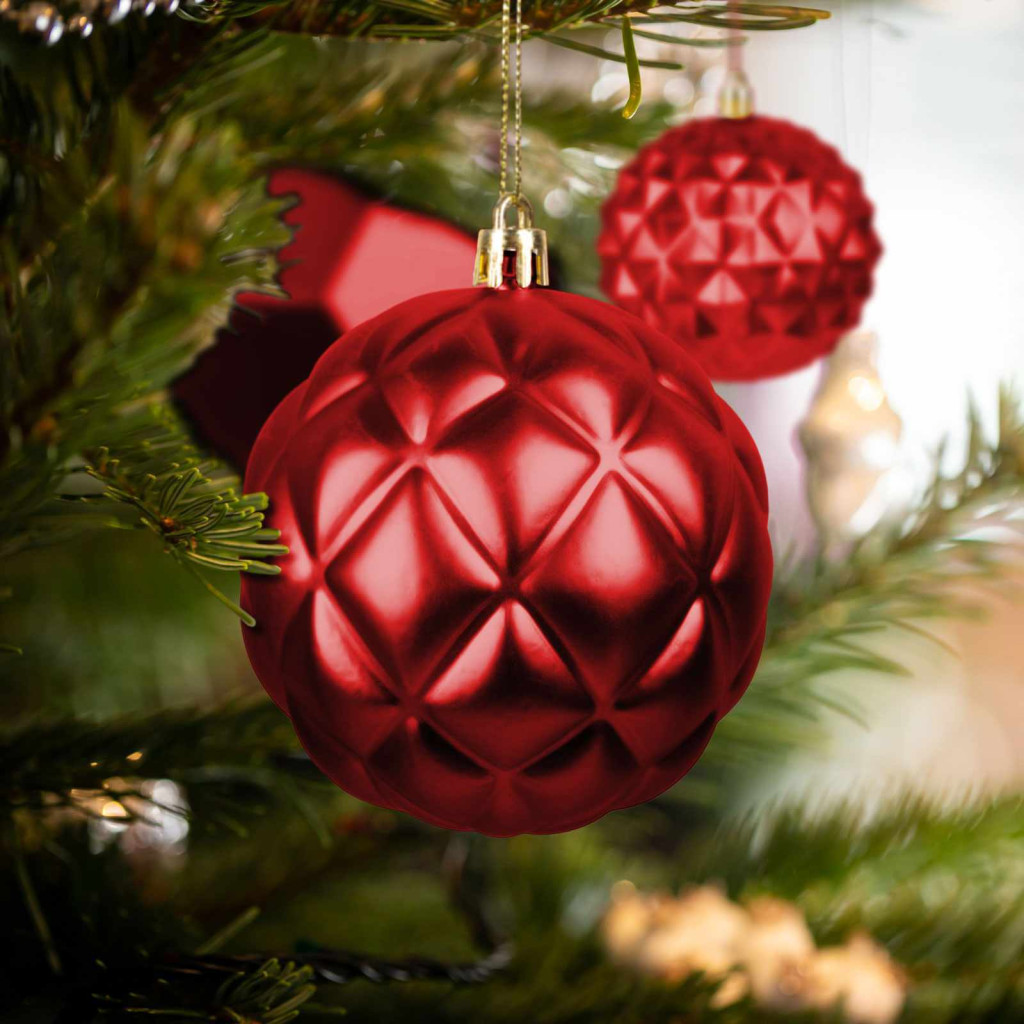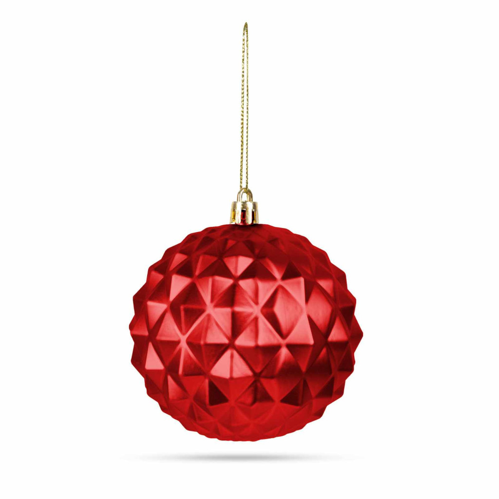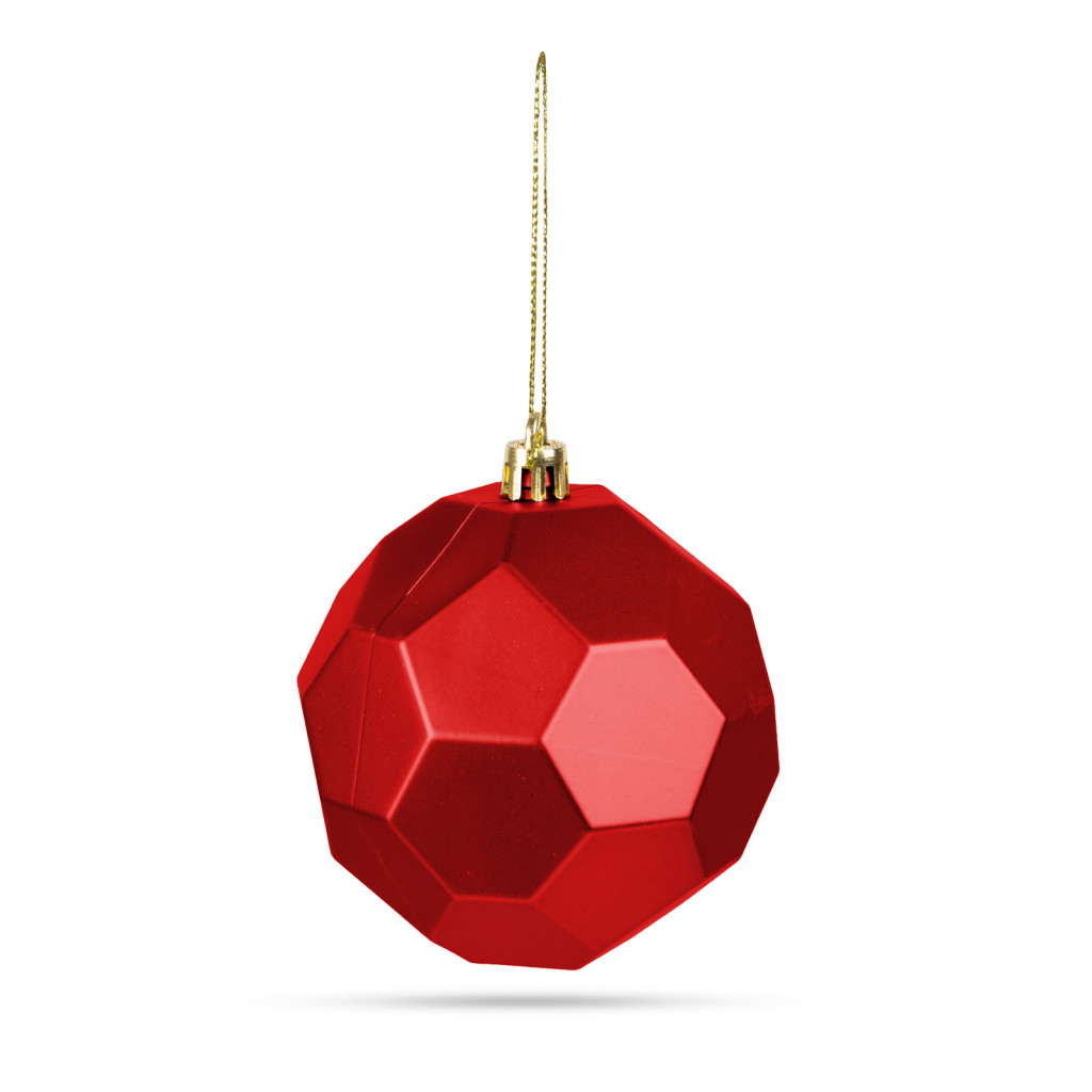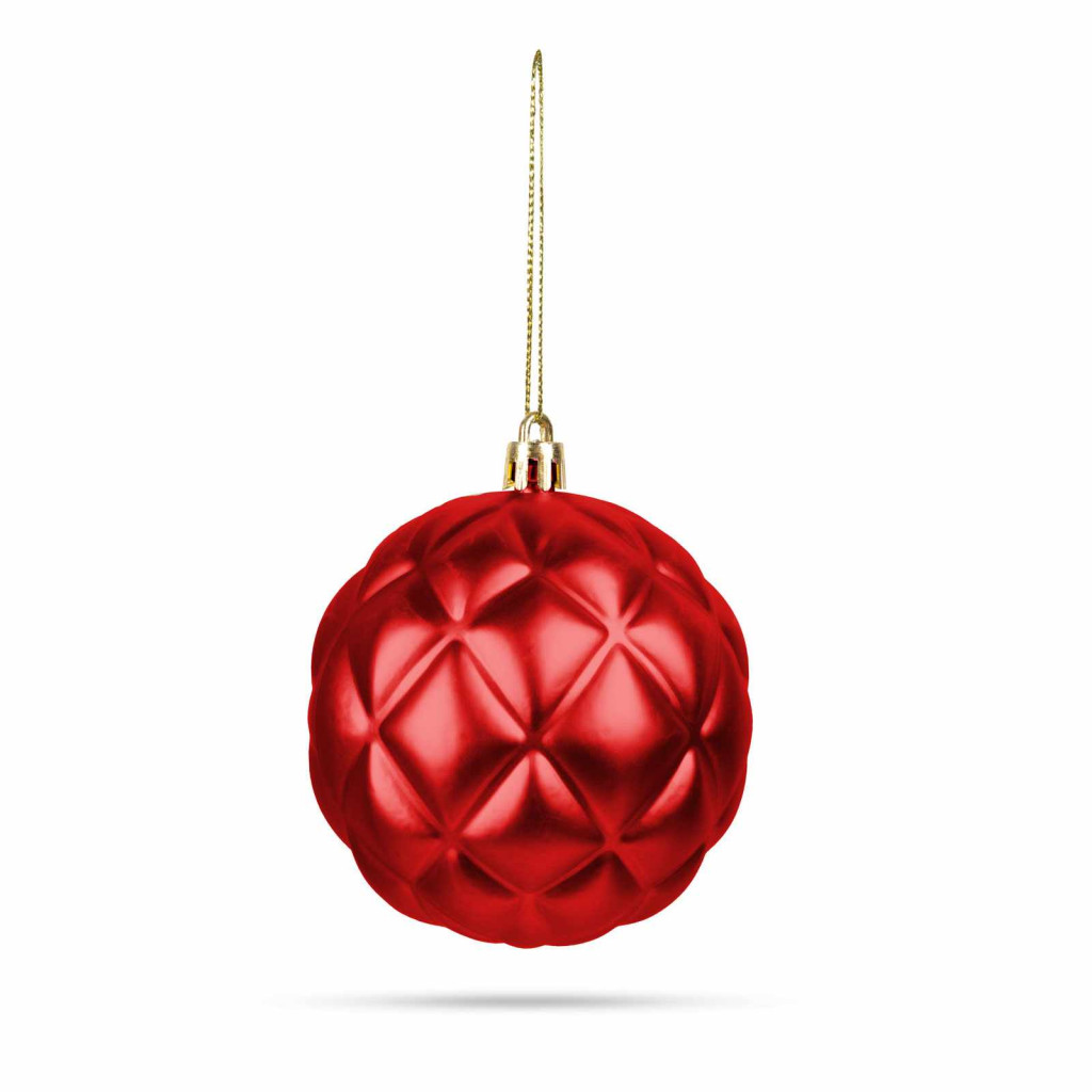 Gömbátmérő: Ø73 mm Szín: Piros Akasztó hossza: 60 mm Csomag tartalma: 6 db dísz Súly: ~15 g / dísz