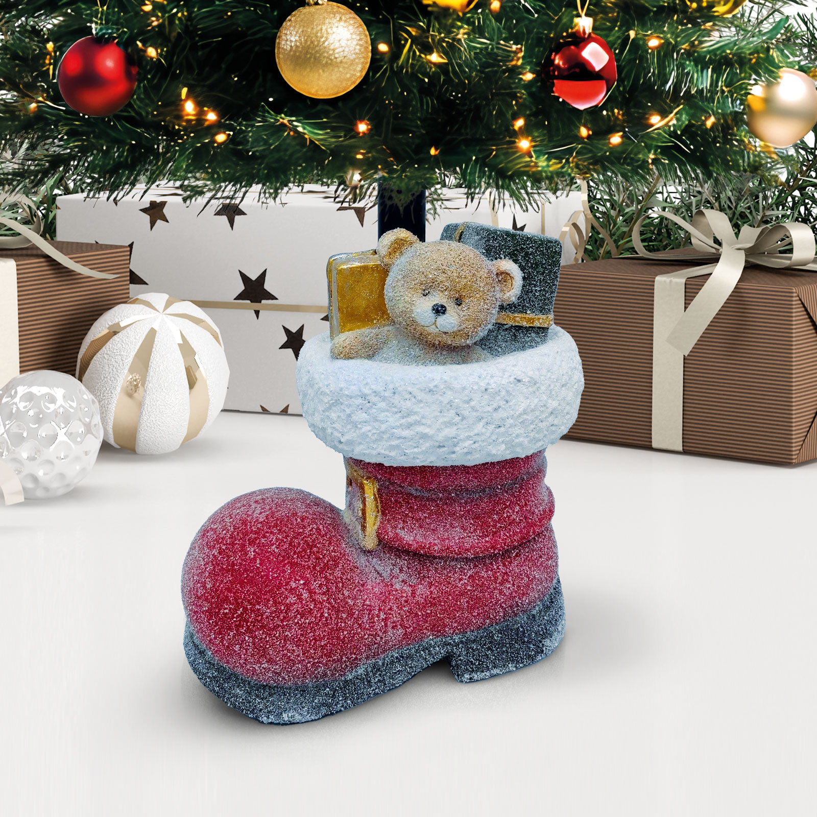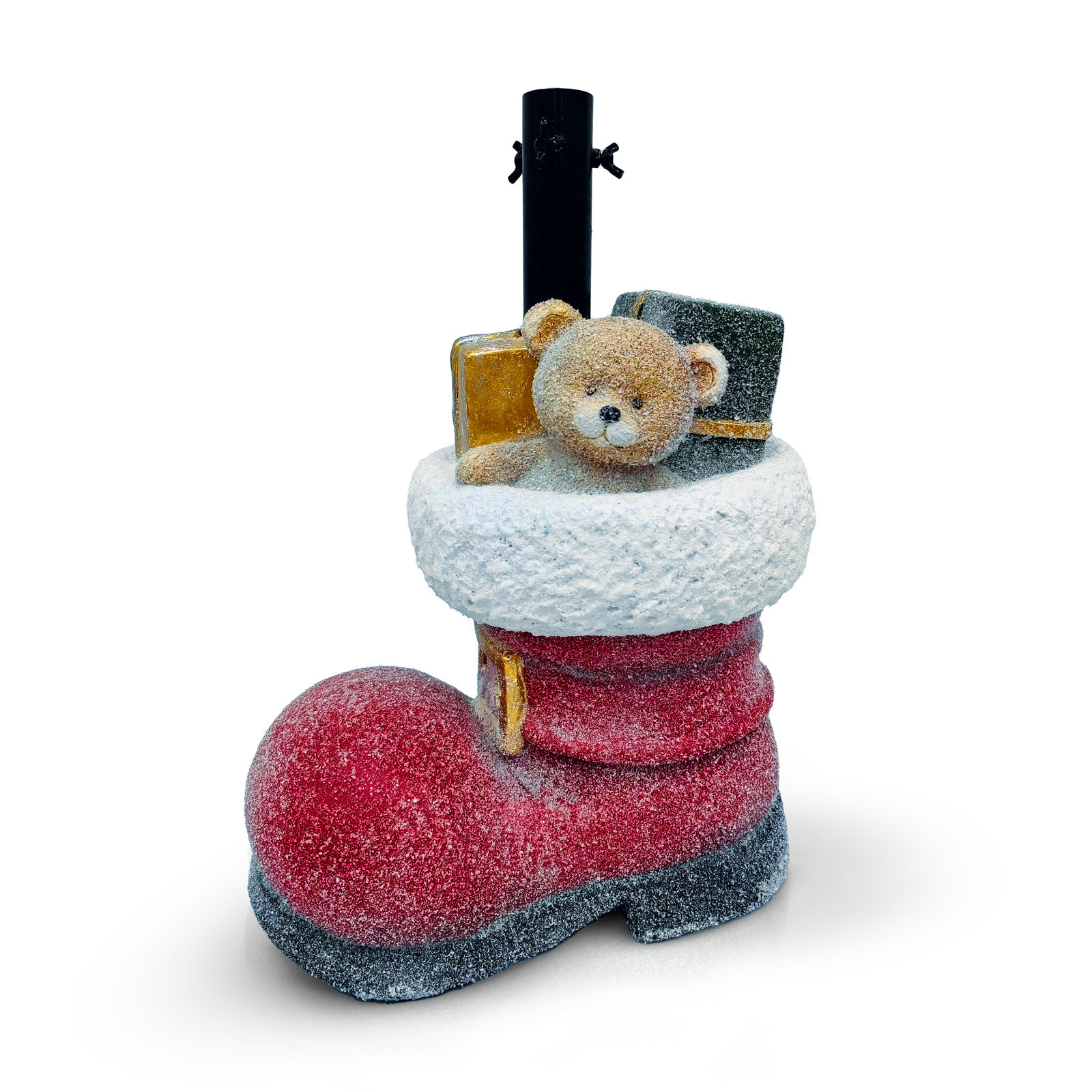 Ez a mikuláscsizma formájú karácsonyfa talp nemcsak praktikus, de dekoratív eleme is lehet a karácsonyfának. A piros színű, fehér felső résszel díszített csizma élethű lábbeli benyomását kelti, miközben stabilan tartja a karácsonyfát. A műkőből készült talp erős tartást biztosít nagyobb méretű fák esetén is.