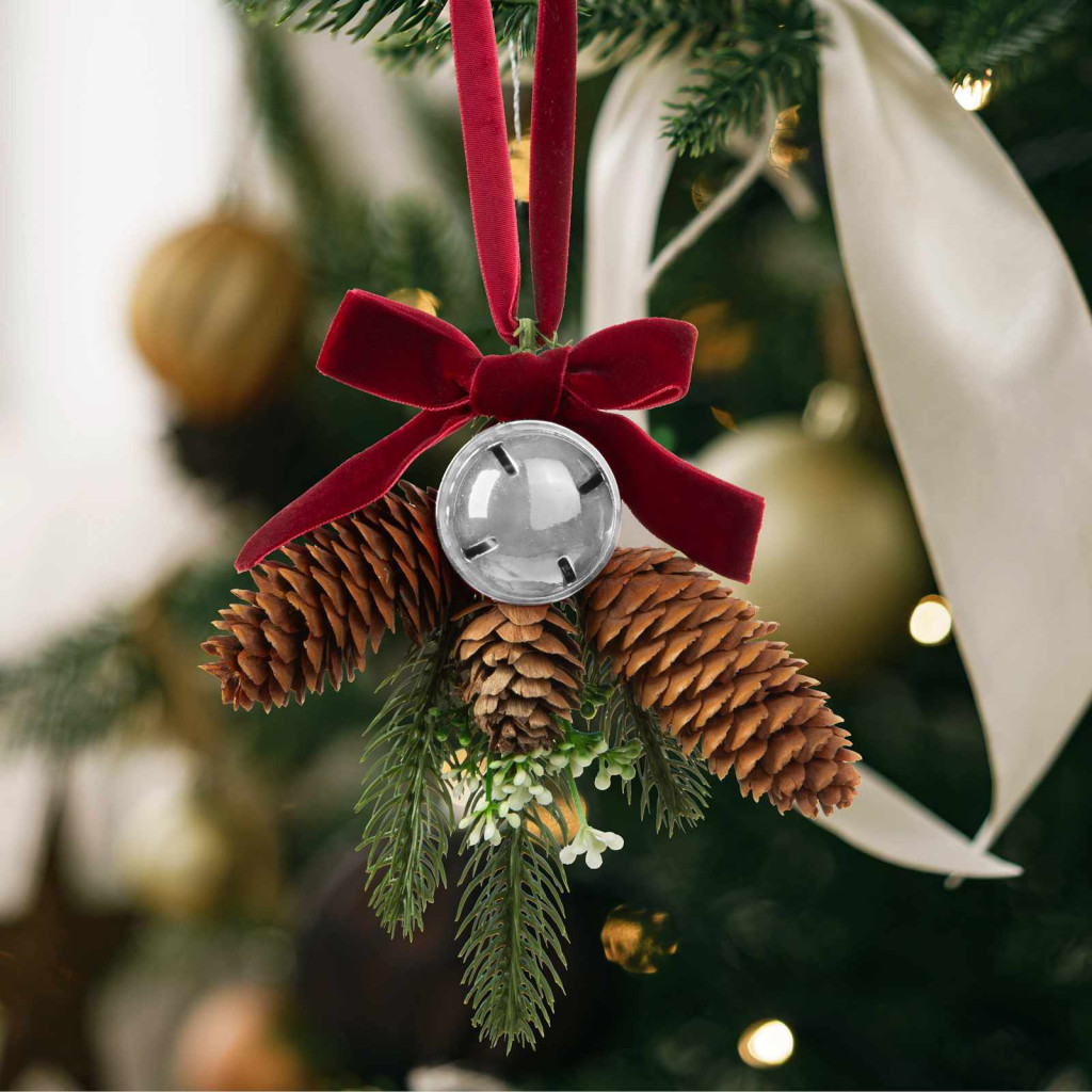 Karácsony előtt érdemes időt szánni a bejárati ajtó feldíszítésére, hiszen az érkező vendégek először a bejárati ajtóval találkoznak. Ha kedves, ünnepi dísszel várja őket, már az ünnep hangulatával átitatva léphetnek be a lakásba. Ez a gyönyörű karácsonyi ajtódísz tökéletes választás ajtajának díszítésére. A dísz alapját egy műfenyő ág alkotja, amely tobozzal, csillogó ezüst színű csengettyűvel és szalaggal van dekorálva. A műfenyő ág természetes zöld színével és dús ágazatával valósághű megjelenést kölcsönöz a dísznek.Könnyen felakasztható a bársonyos anyagból készült szalag segítségével, így egyszerűen és gyorsan díszítheti az ajtót. A műfenyő ág és a díszek időtállóak és tartósak, így hosszú ideig, évről-évre élvezheti az ünnepi hangulatot az otthonában.