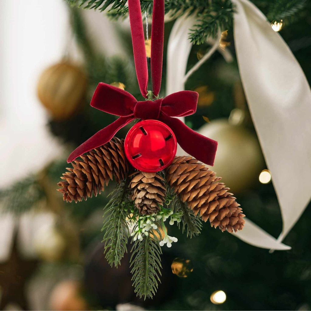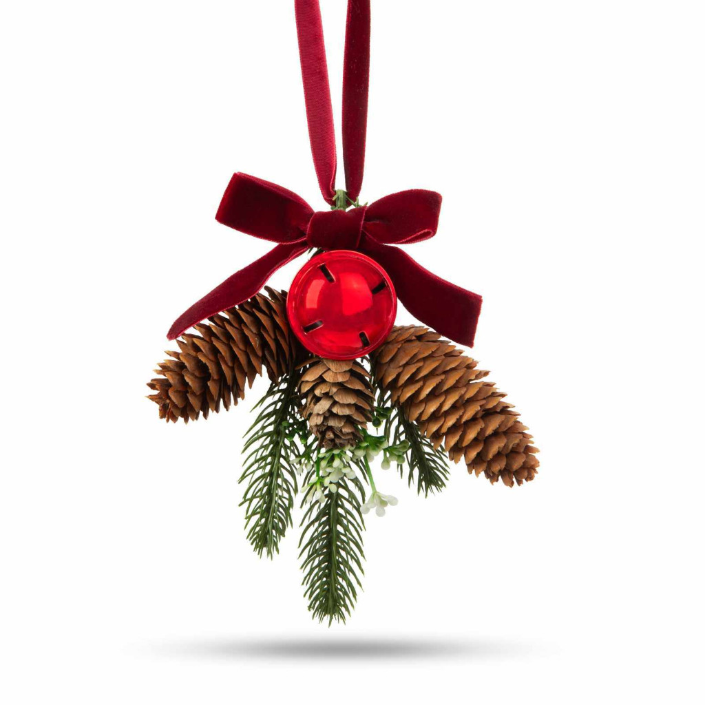 Karácsony előtt érdemes időt szánni a bejárati ajtó feldíszítésére, hiszen az érkező vendégek először a bejárati ajtóval találkoznak. Ha kedves, ünnepi dísszel várja őket, már az ünnep hangulatával átitatva léphetnek be a lakásba. Ez a gyönyörű karácsonyi ajtódísz tökéletes választás ajtajának díszítésére. A dísz alapját egy műfenyő ág alkotja, amely tobozzal, csillogó pirosszínű csengettyűvel és szalaggal van dekorálva. A műfenyő ág természetes zöld színével és dús ágazatával valósághű megjelenést kölcsönöz a dísznek.Könnyen felakasztható a bársonyos anyagból készült szalag segítségével, így egyszerűen és gyorsan díszítheti az ajtót. A műfenyő ág és a díszek időtállóak és tartósak, így hosszú ideig, évről-évre élvezheti az ünnepi hangulatot az otthonában.