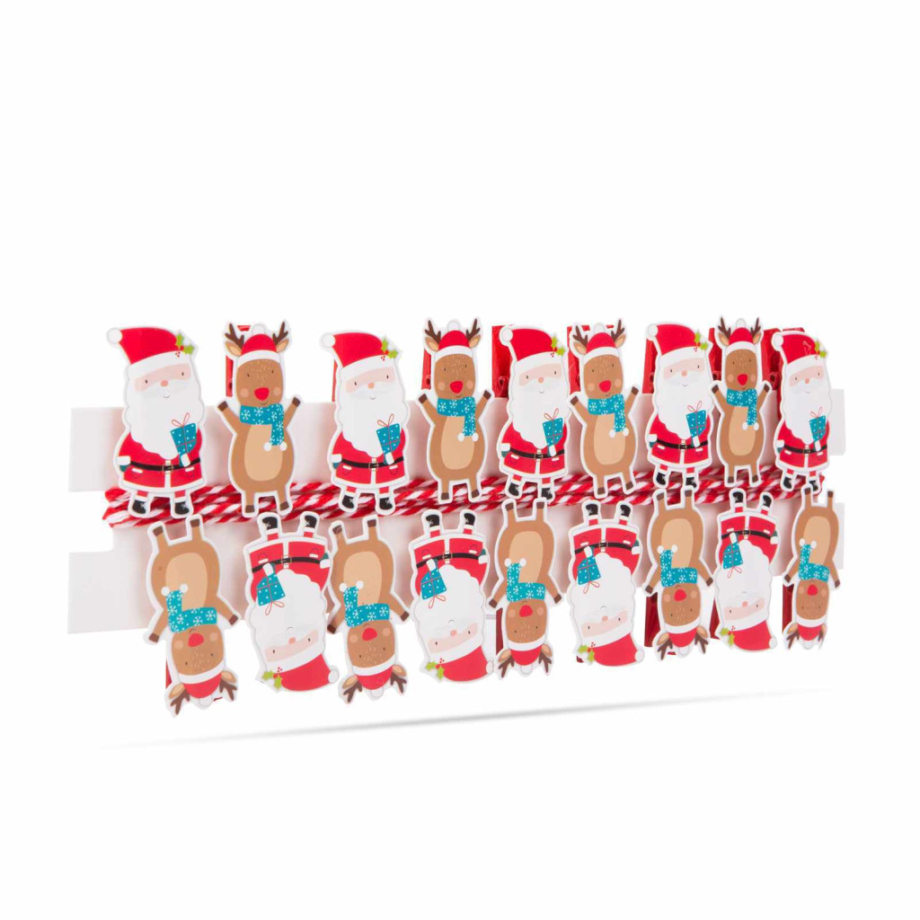 Dekorálja házát vidám mikulás figurás csipesszel és szalaggal. A kisméretű, de erős fa csipesz használható bármire, amire nagyobb társai. Rögzíthet vele különböző díszeket, felrakhatja függönyre őket vagy akár ajándékokra is rögzítheti a csomagban található szalag segítségével.