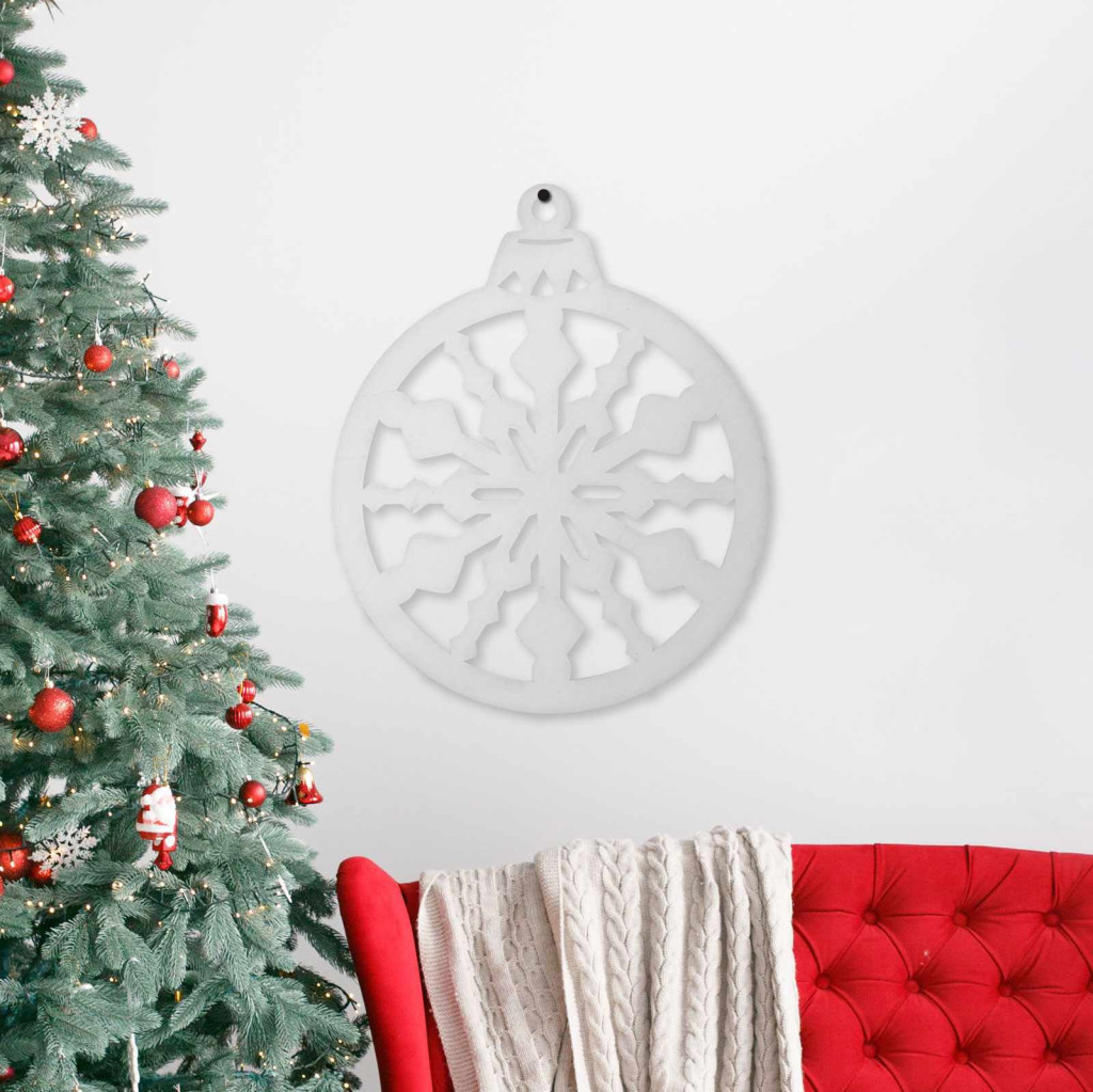 Sokoldalú felhasználással rendelkező karácsonyi dekorációs termék. Gömbdísz forma, fehér textilből, glitteres arany szegéllyel. Használható akár tányéralátétként, ajtódekorációként is, de felakasztva is mutatós bármilyen enteriőrben.