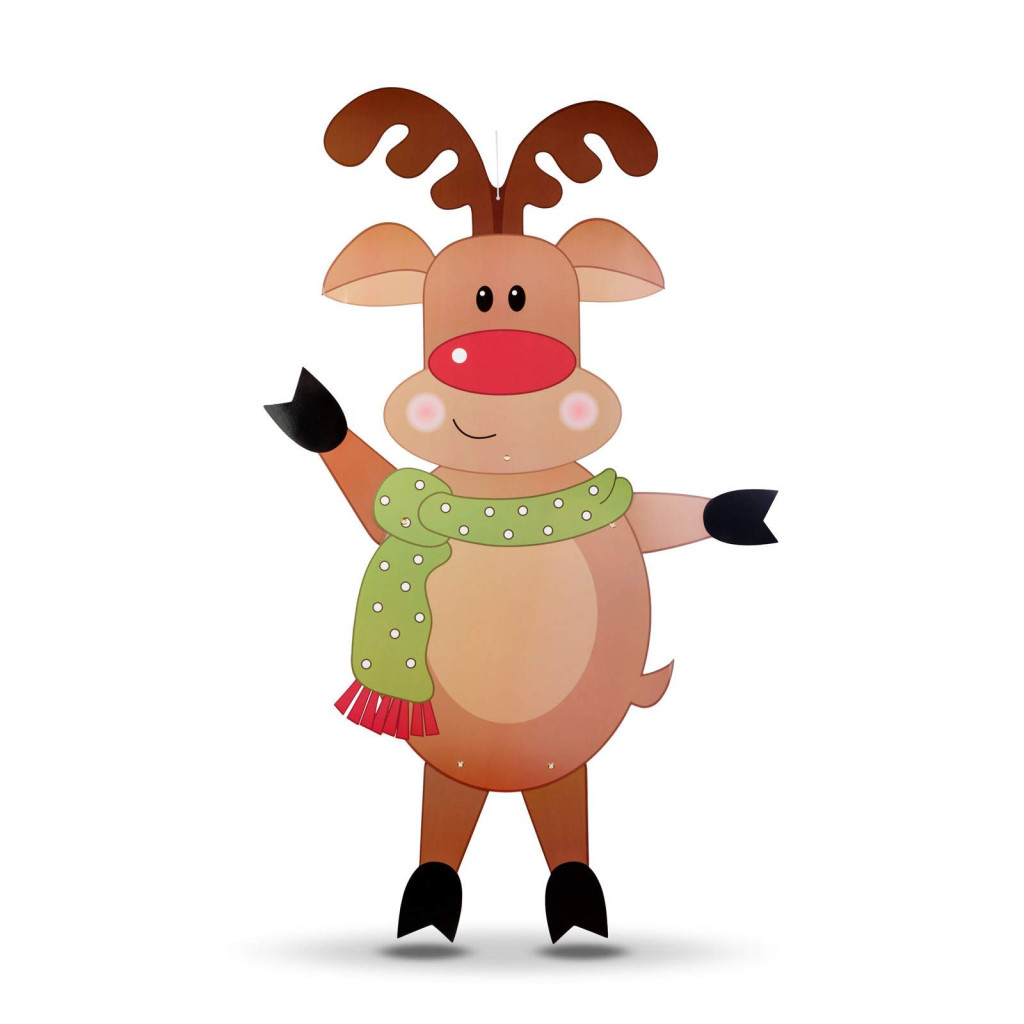 Dekorálja otthonát ezzel a nagyméretű, papírból készült rénszarvassal! Garantáltan feldobja a karácsonyi enteriőrt, végtagjai, feje mozgatható, tetszés szerint beállítható. 90 cm magas, felakasztható így ideális nagyobb terek díszítésére is.Kiválóan alkalmas a karácsonyi hangulat fokozására és kellemes meglepetést nyújt az ünnepi időszakban érkező vendégek részére is.