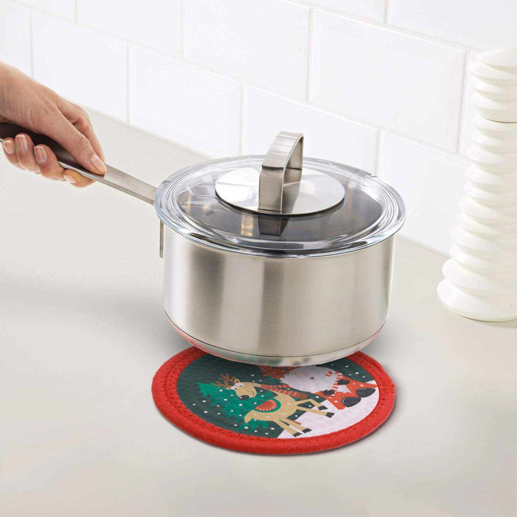 Textilből készült, karácsonyi edényalátét, amely megakadályozza, hogy károdosjon asztala, pultja a forró edények hatására. Az alátét beleillik az ünnepi asztali dekorációba, így teljes lehet az összhang.