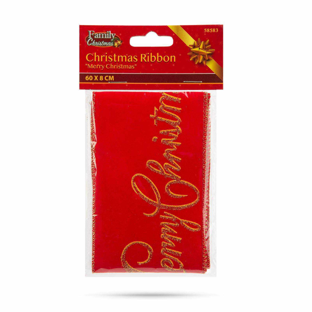 Szalag méret: 60 x 8 cm Anyag: Dacron Szín: Piros szalag, arany színű "Merry Christmas" felirattal Súly: ~12 g / tekercs