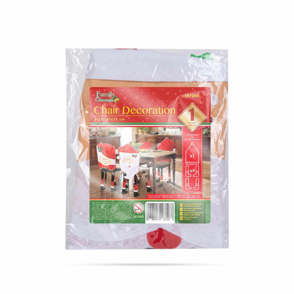 Öltöztesse otthonát ünnepi hangulatba ennek a székdekor szettnek a segítségével. A piros / fehér színek, minden ünnepi enteriőrben jól mutatnak. A nagy méret miatt a legtöbb székkel kompatibilis méret.