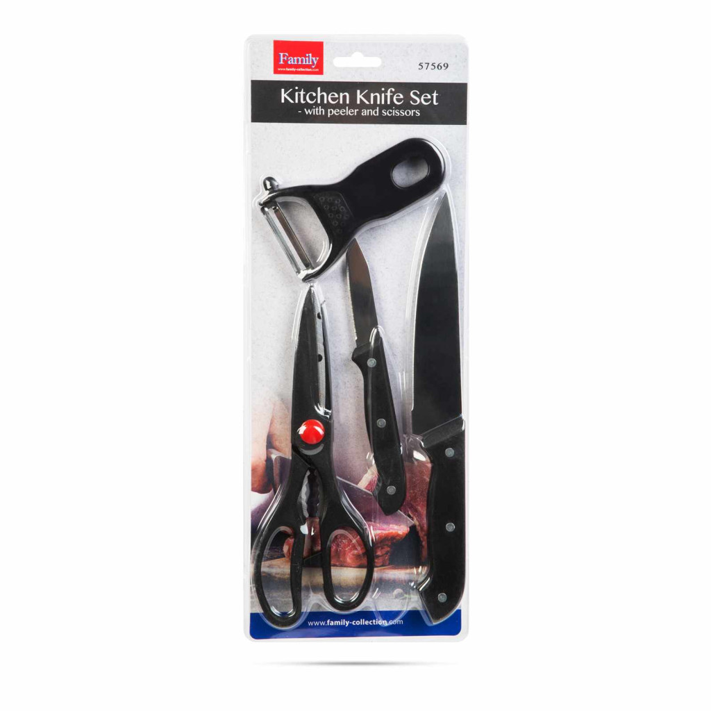 Vágjon, szeleteljen, aprítson, hámozzon ezzel a minden igényt kielégítő késkészlettel. A rozsdamentes acél pengék rendkívüli élességgel rendelkeznek, így könnyedén szeletelhet vele húst, hagymát, zöldségeket. A szett része egy beépített diótörővel rendelkező konyhai olló és zöldséghámozó is.
