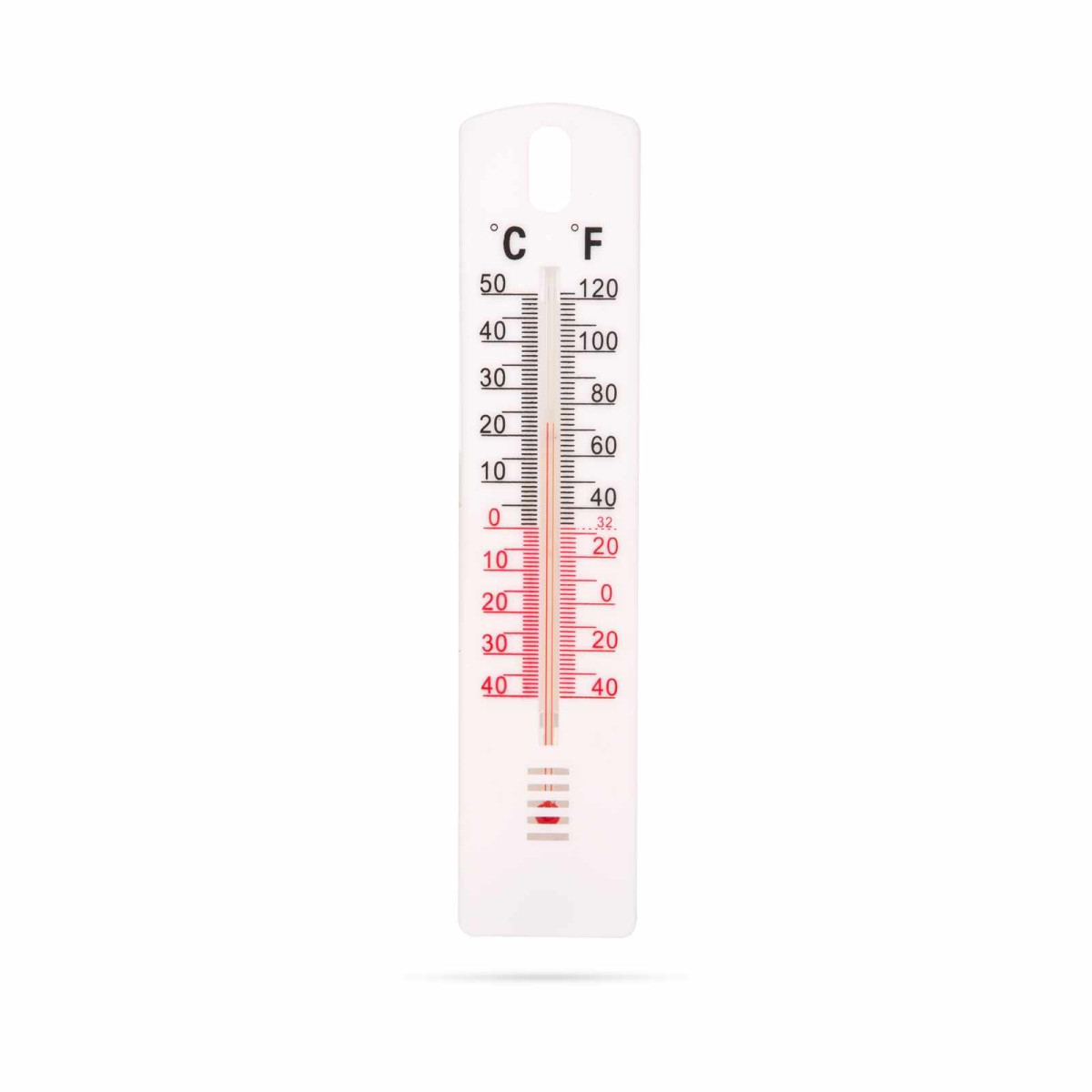 Hagyományos kül- és beltéren egyaránt használható hőmérő, akasztóval vagy csavarokkal rögzíthető.