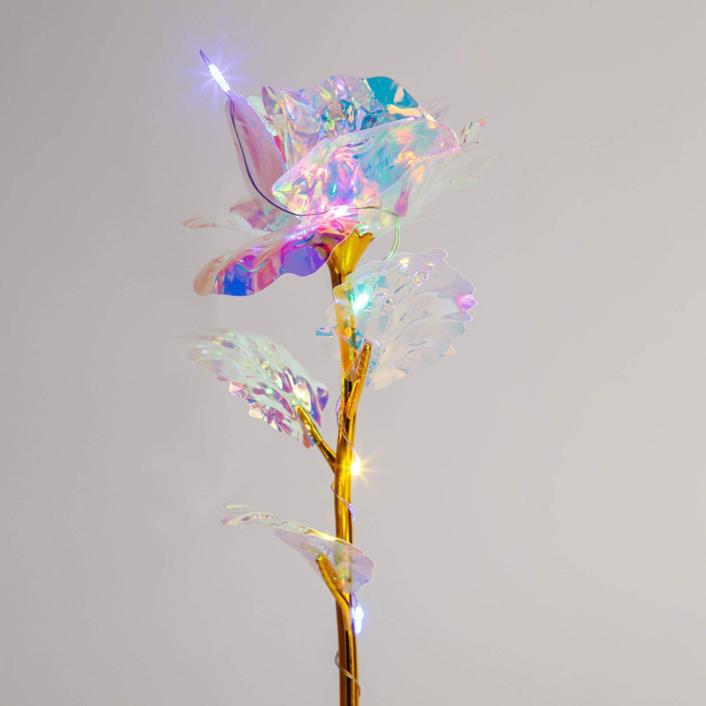 Varázsoljon különleges hangulatot otthonába vagy lepje meg szeretteit ezzel a különleges, LED-es rózsával! Az aranyszínű szár, az élénk piros szirmok és a színes fények varázslatos összhatást keltenek, így a dekoráció minden alkalmat emlékezetessé tesz. A rózsa szirmai és levelei finoman megmunkált műanyagból készültek, míg az aranyszínű szár luxus érzetet kelt. Tökéletes ajándék Valentin-napra, évfordulókra, születésnapokra, karácsonyra vagy bármely különleges alkalomra.
