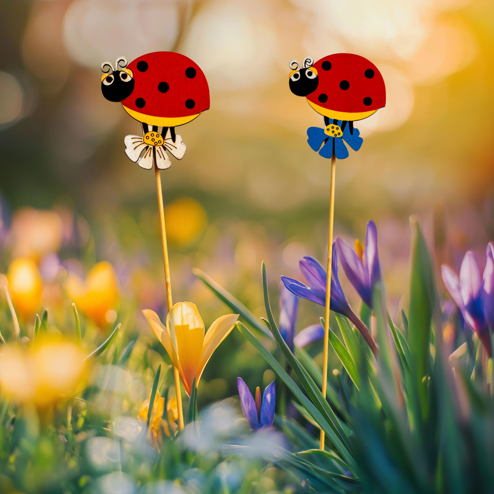 A "tökéletes kert" a részletekben rejlik! Dekorálja kertjét ezekkel a vidám, színes, kis leszúrható katicabogarakkal. Csodálatos kiegészítője lehet virágoskerteknek, mintha csak igazi katicák lennének.