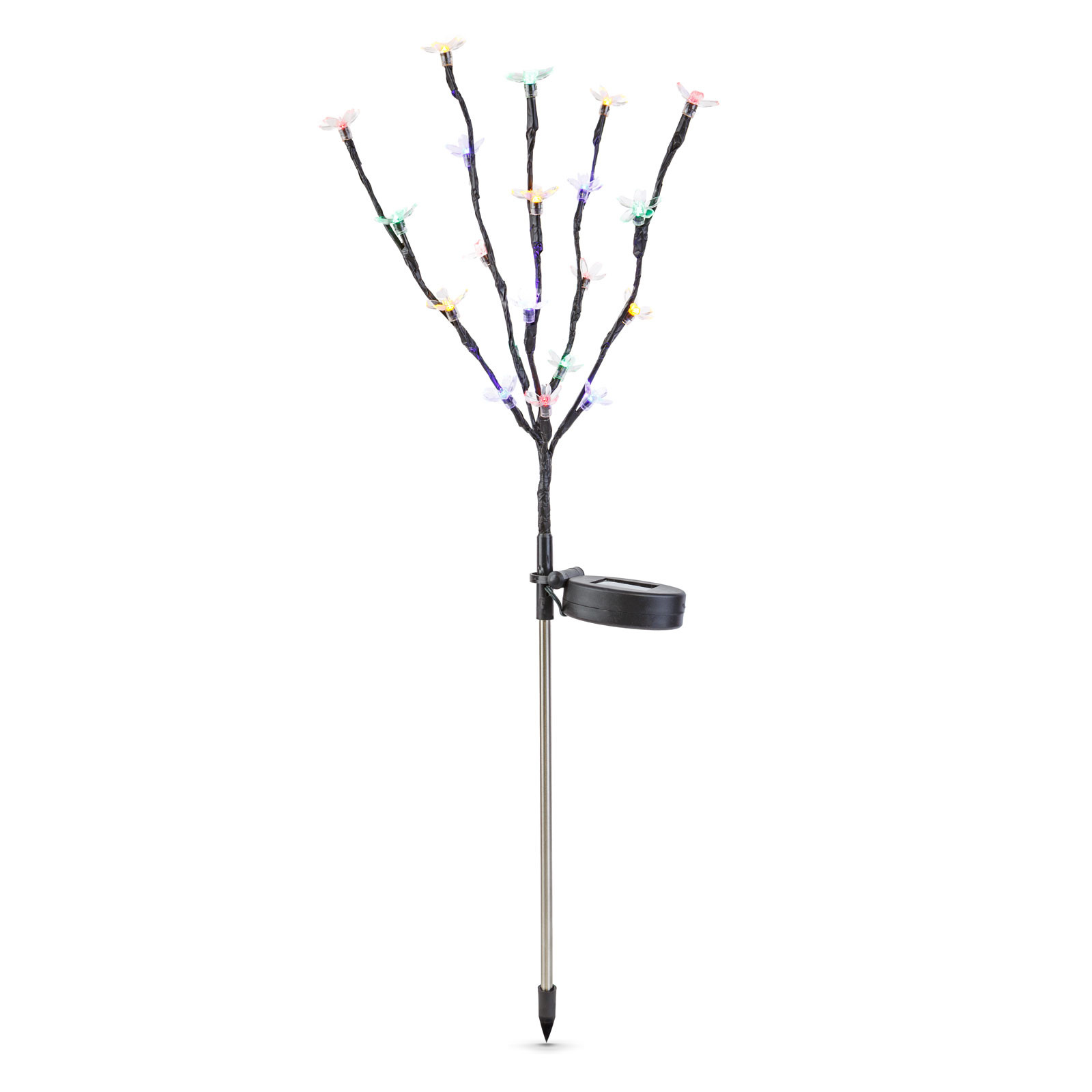 Dobja fel kertjét ezzel a varázslatos, leszúrható szolár virággal! A 65 cm magas szolár lámpán 20 db színes LED világít, amelyek fényükkel beragyogják környezetüket az esti órákban. A napelemes működésnek köszönhetően nincs szükség hálózati áramra vagy elemcserére, így bárhová könnyedén telepíthető. Ideális választás kerti utak, teraszok vagy virágágyások díszítésére. A színes fények vidám hangulatot teremtenek, így a kertje nappal és éjjel is a figyelem középpontjába kerülhet.