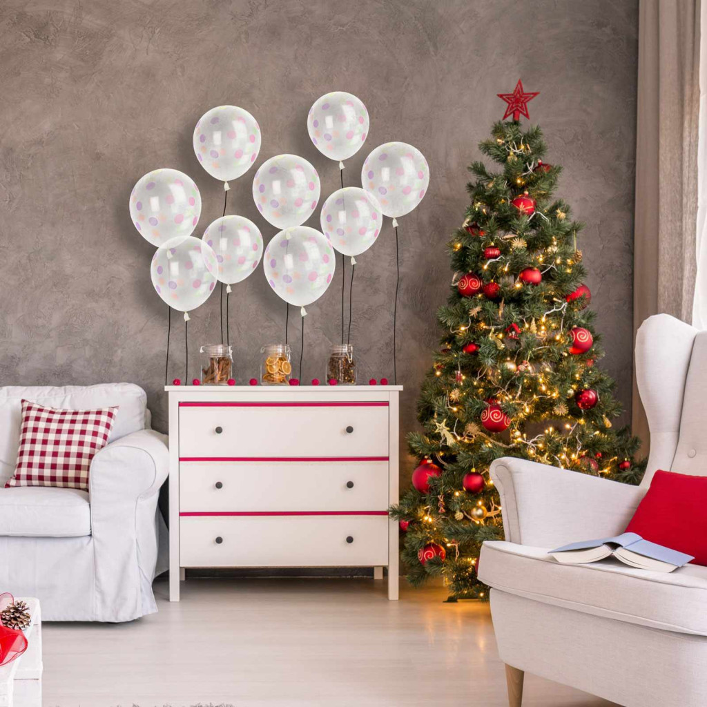A dekorációs lufi nem csak az ünnepi időszakban tökéletes választás! Vidám megjelenésű, színes pöttyökkel díszített, áttetsző luftballon. Ideális lehet születésnapi, névnapi partik, családi összejövetelek helyiségeinek dekorálására.