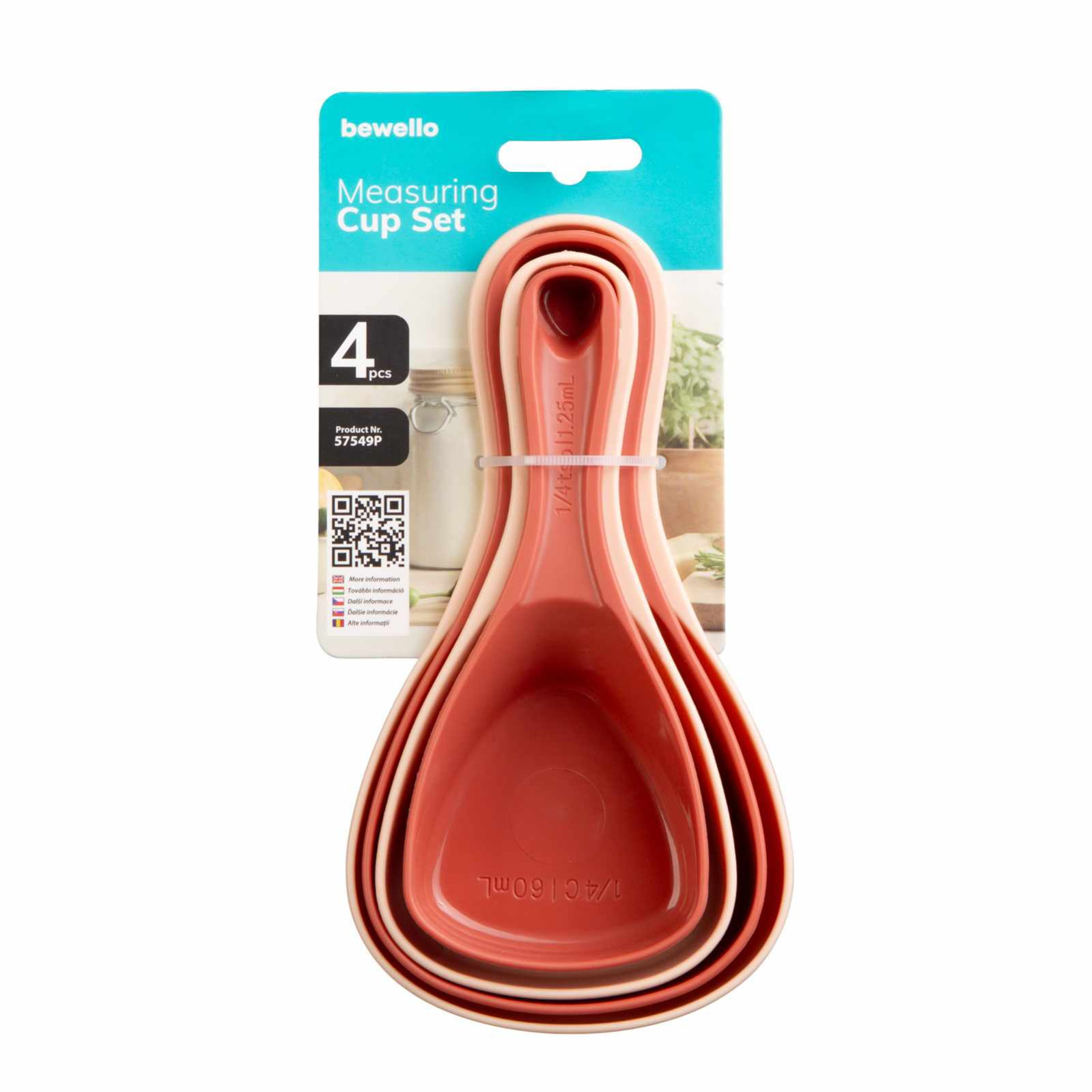 Mérési egységek: 60 ml, 85 ml, 125 ml, 250 ml Teljes méret: 170 x 90 x 50 mm Szín: Barack Anyag: Műanyag Súly: ~100 g