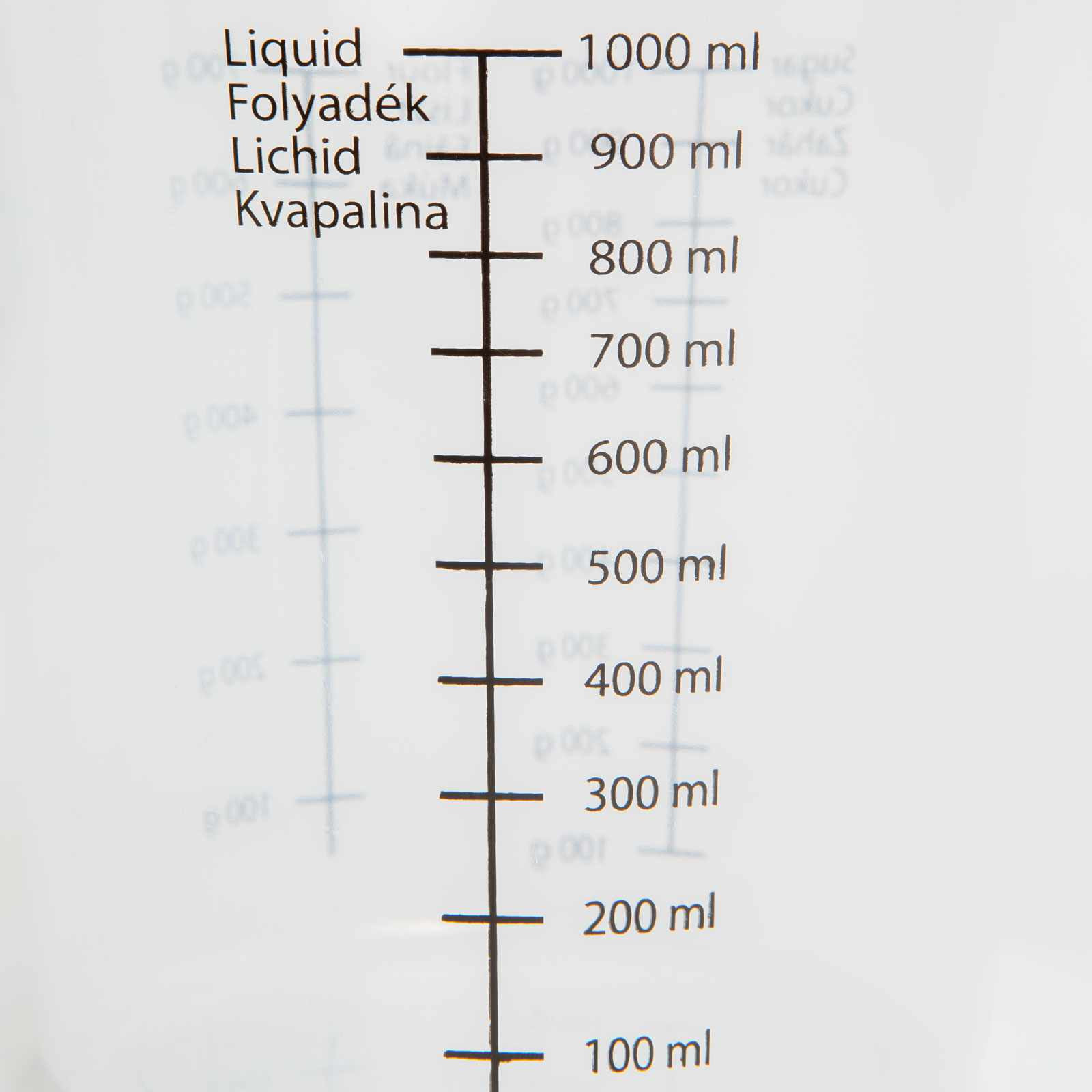 A könnyű használat érdekében kiöntő csőrrel és füllel van ellátva. Skálázott, folyadékot 1 literig, cukrot 1000 grammig, lisztet 700 grammig mérhetünk.