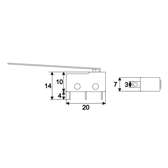 Kapcsoló típus: SPDT Áramerősség: 5 A / 250 V AC Kapcsoló mérete: 3,2 x 0,5 mm Max. hőmérséklet: 85°C Súly: 1,6 g