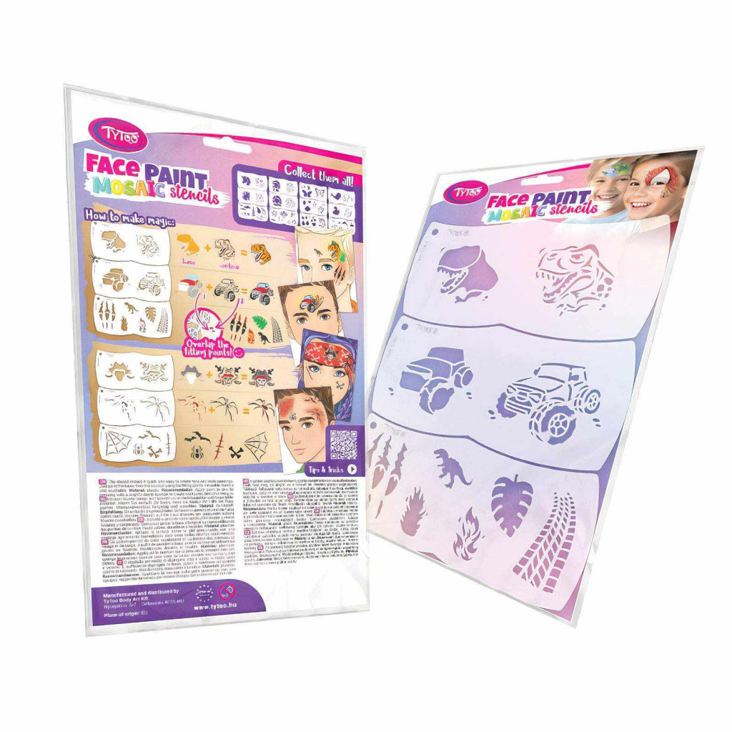 Hatalmas öröm a gyerekeknek egy arcfestés, amit a TyToo Mosaic sablonokkal, rajztudás nélkül Ön is elkészíthet otthon. A TyToo Mosaic sablonja segítségével könnyedén festheti meg, az Ön által kiválasztott mintát. A sablon formája úgy van kialakítva, hogy tökéletesen illeszkedjen egy kisgyerek arcára, és könnyen kezelhető legyen, így a használata is rendkívül kényelmes. A minták részét képező illesztési pontok megkönnyítik a minták pontos egymásra helyezését, el is veheti és ugyan oda vissza is teheti festés közben.