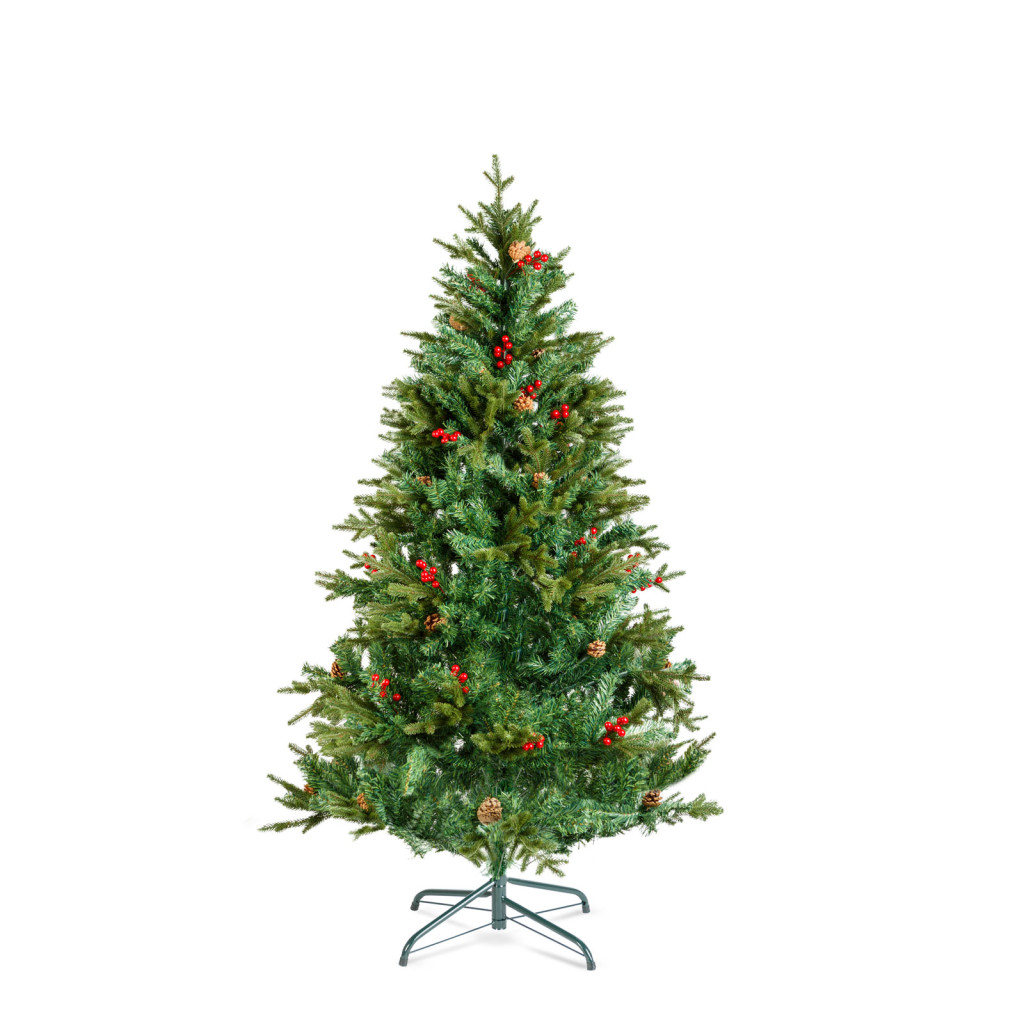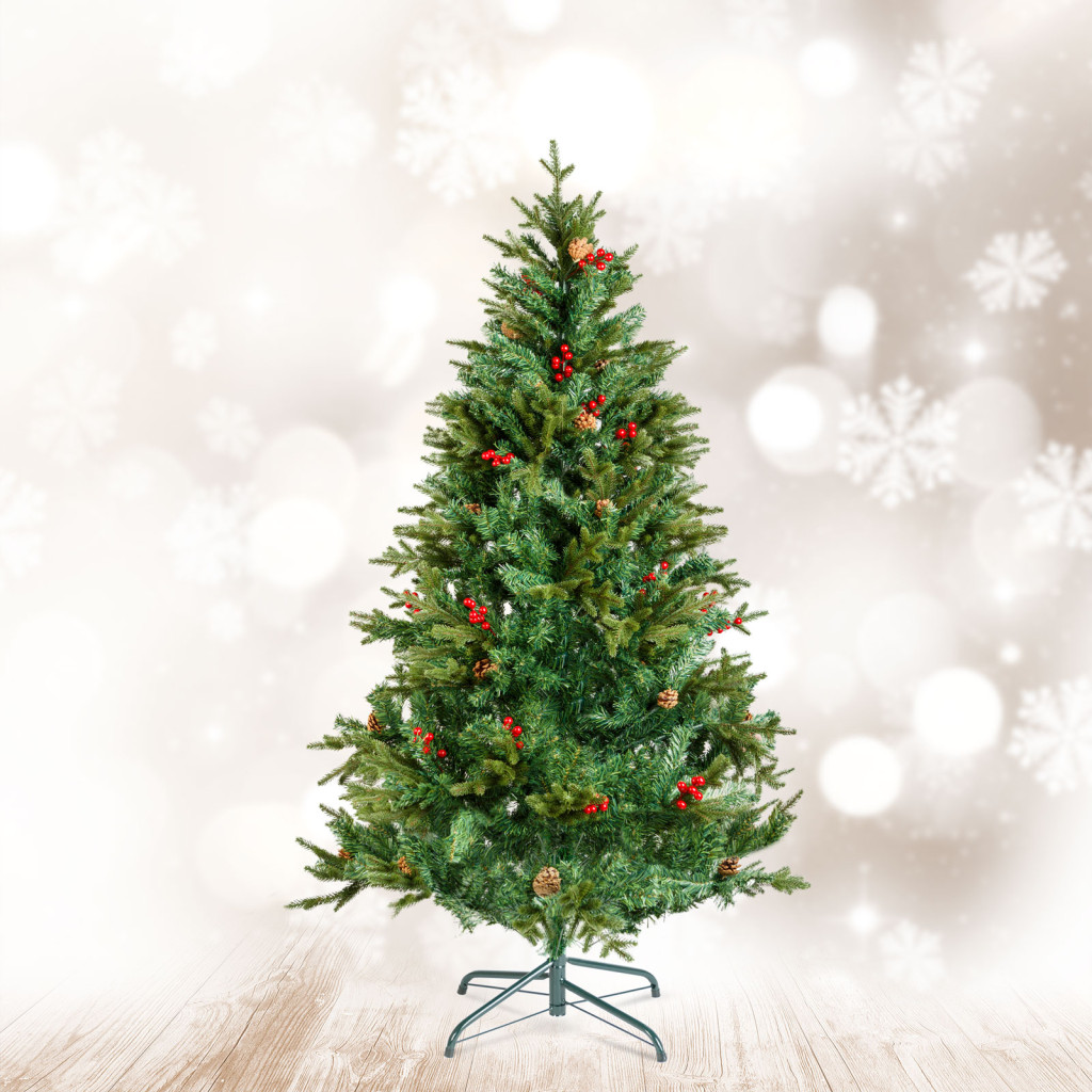 Varázsoljon meghitt ünnepi hangulatot otthonába, ezzel a klasszikus zöld műfenyővel! A sűrű ágrendszer és a dús, élethű tűlevelek és a piros bogyók természetes hatást keltenek, így tökéletes alternatívát nyújtanak az élő fenyő helyett. A tartós anyagból készült műfenyő hosszú éveken át megőrzi szépségét, miközben nem hullatja tűleveleit.A stabil szerkezet és az egyszerűen összeszerelhető elemek lehetővé teszik a könnyű felállítást, szétszerelést és tárolást. Bármilyen dekorációval kombinálható, legyen szó akasztható karácsonyi díszekről, gömbökről vagy modern fényfüzérekről.