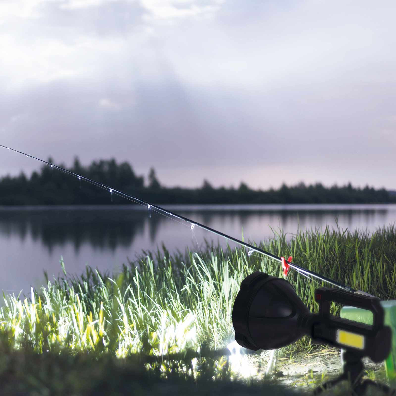 • Strapabíró kialakítású, kisméretű, mégis óriási fényerővel rendelkező keresőreflektor, amely akkumulátoros működésének köszönhetően hosszantartó működést garantál. A nagyteljesítményű, extra fényerővel rendelkező, XPE50-es CREE LED, akár 200 méter szúrófényt is képes kibocsátani magából, így minden körülmények között számíthat rá. Az ergonomikus ház IP55 védelemmel rendelkezik, így esős, párás időben is kiváló szolgálatot nyújt. A lámpa kényelmes használatát kétféle csúszásmentes, bordázott fogantyú garantálja, mely közül az egyik háromlábú tripoddá is alakítható, így bárhová elhelyezve állandó fényként világítja meg a munkaterületet. Ideális felszerelése lehet túrázóknak, vadászoknak, horgászoknak, keresőcsapatoknak, biztonságiőröknek vagy akár hatóság embereinek is.