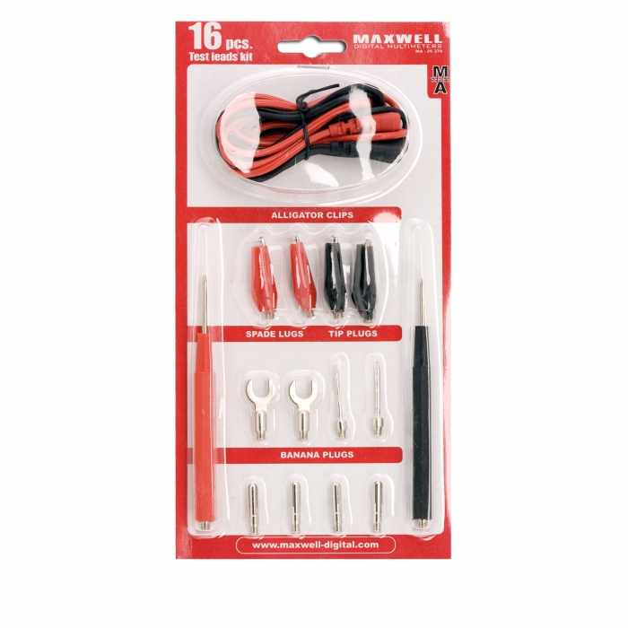 A szett tartalma:- 2 db mérővezetéket tartalmaz, melynek egyik vége banándugó, a másikhoz pedig csavarosan rögzíthetőek a tartozékok