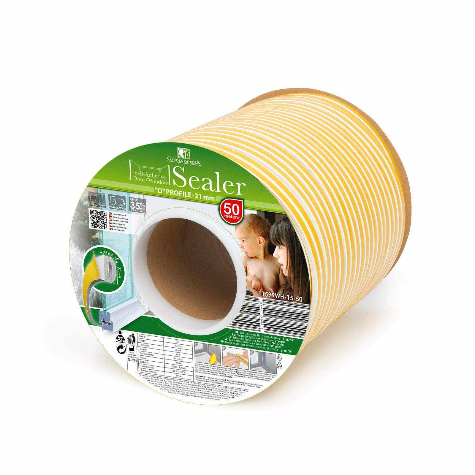 Profil: "D" Szélesség: 21 mm Vastagság: 15 mm Hossz: 50 m (2 x 25 m) Szigetelő képesség: 5 - 15 mm Színe: Fehér Anyaga: Gumi - EPDM Súlya: 3 kg Hőálló: -50°C - +60°C Általános élettartam: 8 év