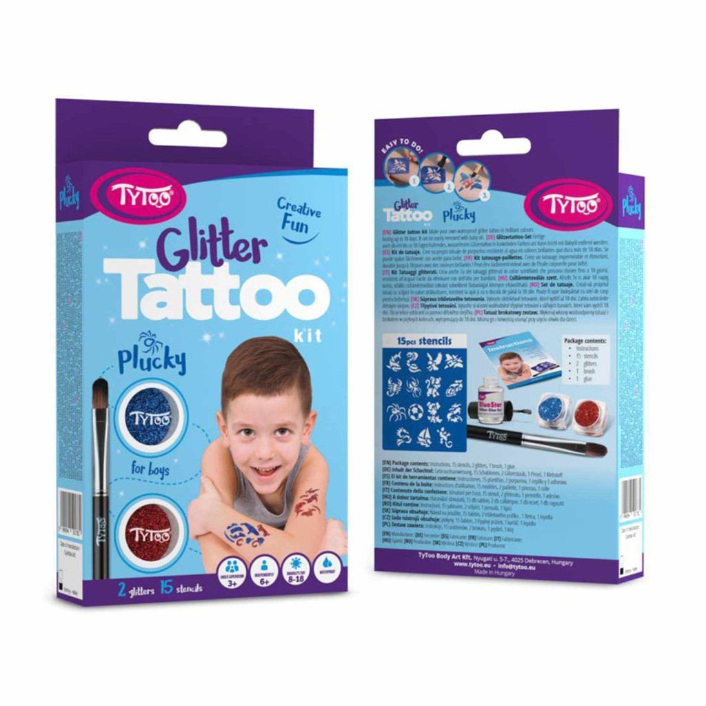 15 db heteken át tartó ragyogó csillámtetoválást készíthet kisfiúknak, egyszerűen. A szettben mindent megtalál a tetkók elkészítéséhez. Kifejezetten 3-12 éves fiúknak tervezték, amelyben hűllös, állatos, járműves mintákat talál.A TyToo csillámtetoválást a gyermekek is biztonságosan használhatják, ugyanis kozmetikai minőségű anyagokat tartalmaz, ami megfelel az EU szabályoknak. Alkalmazása egyszerű, akár egy 6 éves kisgyermek is el tudja magának készíteni a saját csillámtetkóját. Ráadásul az alkotás közben még a készségeit is fejlesztheti. A szett tele van hűllös, állatos, járműves sablonokkal, melyek kifejezetten gyermeke pici karjára lettek tervezve. Így akár saját magának is könnyedén elkészítheti az apró szikrázó tetkóit, de közösen szórakozva még jobb móka lehet számára!