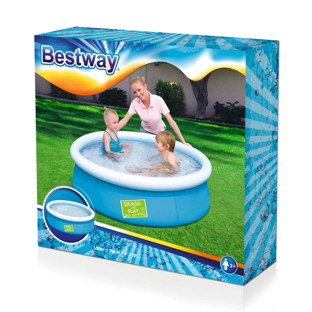 Mérete: Ø152 x 38 cm Anyaga: 3 rétegű PVC Űrtartalom: 477 liter (80 %-os víztelítettséggel) Színe: Középkék, fehér peremmel Súlya: ~2 kg