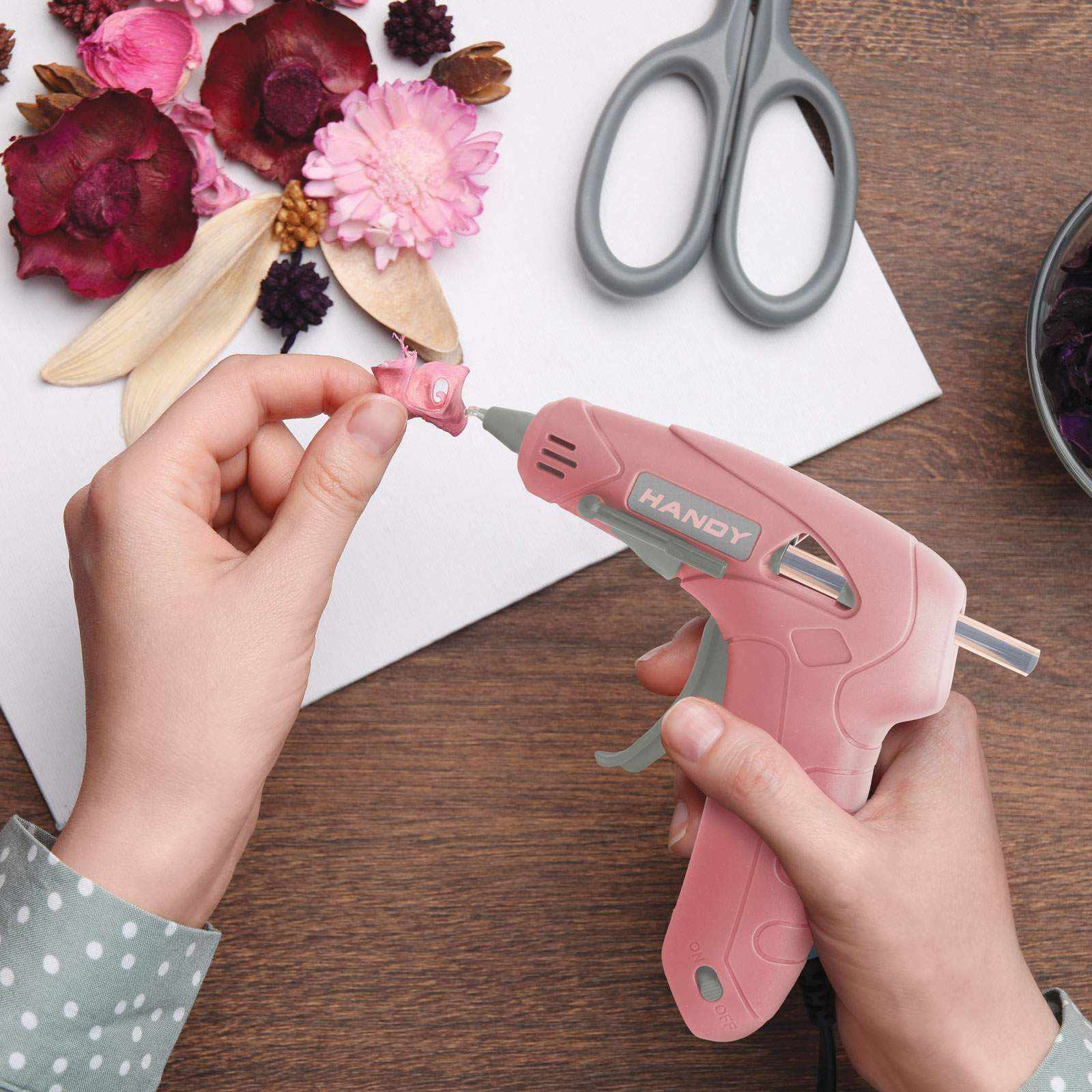 Ez a vezeték nélküli ragasztópisztoly alkalmas kisebb ragasztási feladatokhoz, barkácsoláshoz. A beépített akkumulátor, kényelmes és biztonságos, vezetékmentes használatot biztosít. Az ergonomikus kialakítás előnyös lehet precíziós feladatoknál, ideális lehet: fotóalbumokhoz, papír-írószerekhez, műanyagokhoz vagy saját magunk által készített dekorációs elemekhez. A precíziós csúccsal és a csepegés védelemmel elkerülhető a ragasztófolyás. A ragasztómennyiség a pisztolyravasz húzásával precízen adagolható, így nem kerül egyszerre túl sok ragasztó a ragasztani kívánt felületre. A ragasztó miután lehűlt újra megszilárdul.