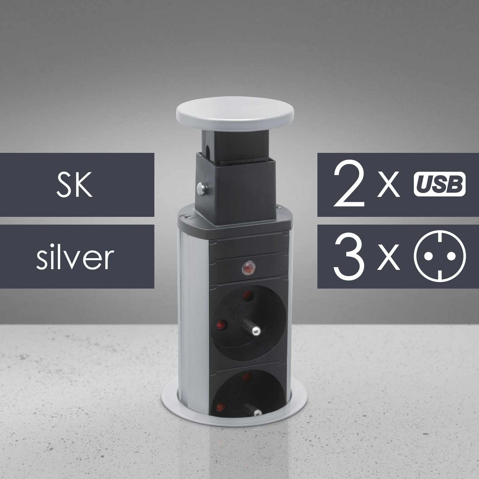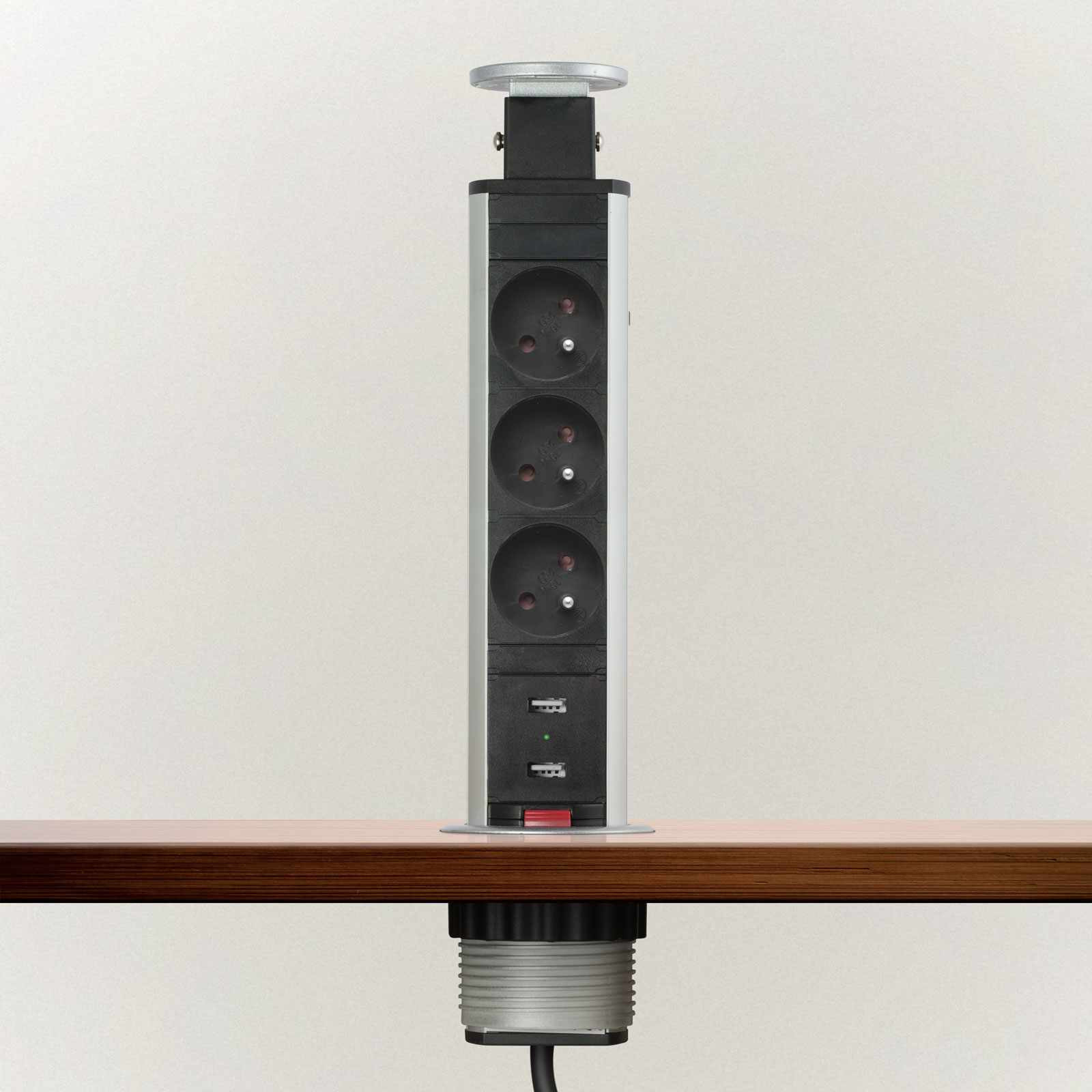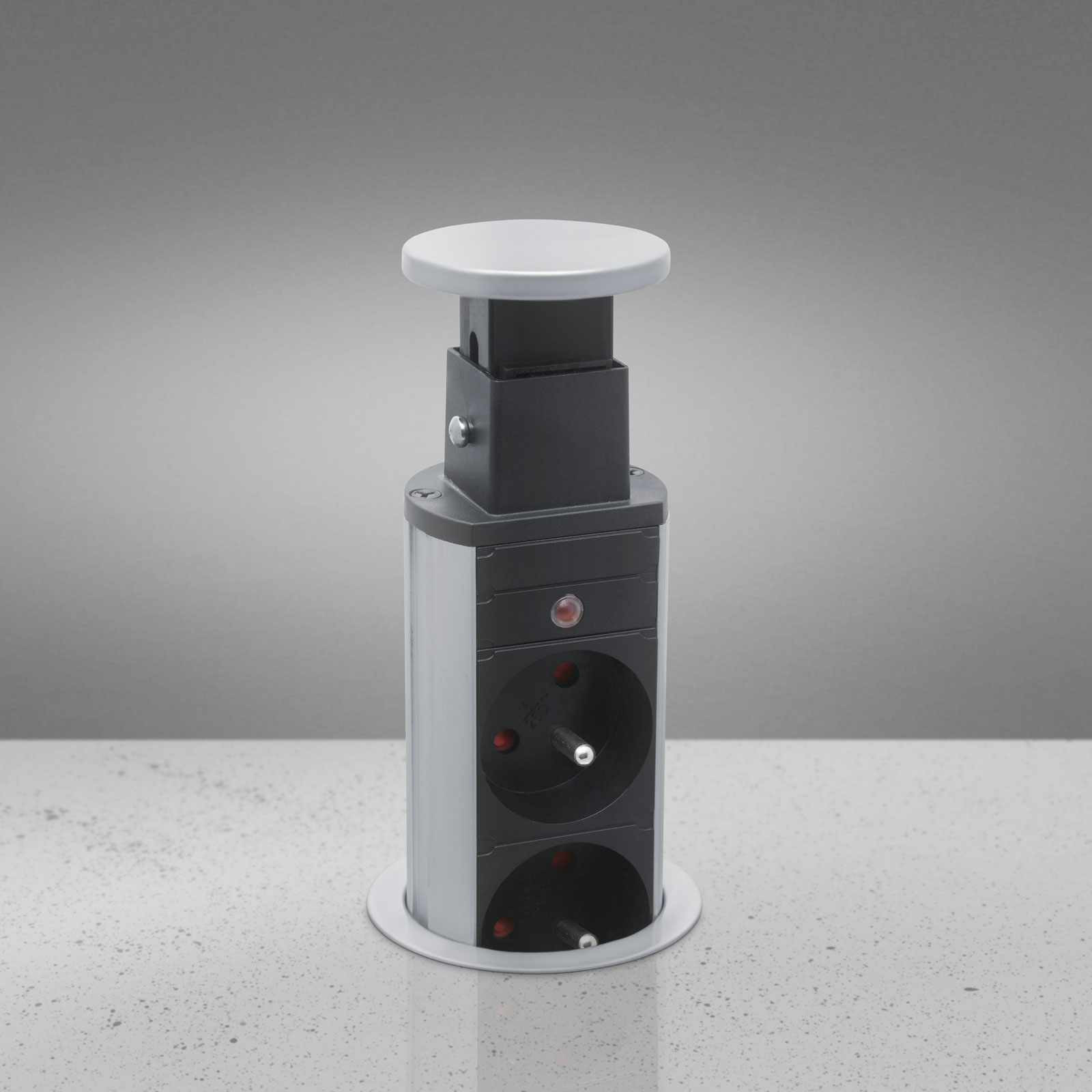 Süllyeszthető elosztó irodai és otthoni felhasználásra, fém házzal. Asztala, bútora legyen mindig elegáns és rendezett, mégis funkcionális. A rejtett elosztó kiváló megoldás lehet ha már például kész konyhával rendelkezik, de nincs elegendő konnektor a kívánt helyen. Ilyenkor falvésés és villamos hálózat bővítés nélkül, remek alternatíva lehet egy rejtett elosztó. Egy mozdulat és máris rendelkezésre áll 3 szabad konnektor. Ideális lehet olyan elektromos eszközökhöz, amit nem folyamatosan használunk, kenyérpirító, vízforraló... Ha használaton kívül vannak, a "töltőoszlop" egy mozdulattal elrejthető, ezzel is megkönnyítve például a takarítást, valamint rendezett, letisztult külsőt ad a helységnek.- 3 db gyermekvédelemmel ellátott aljzattal
