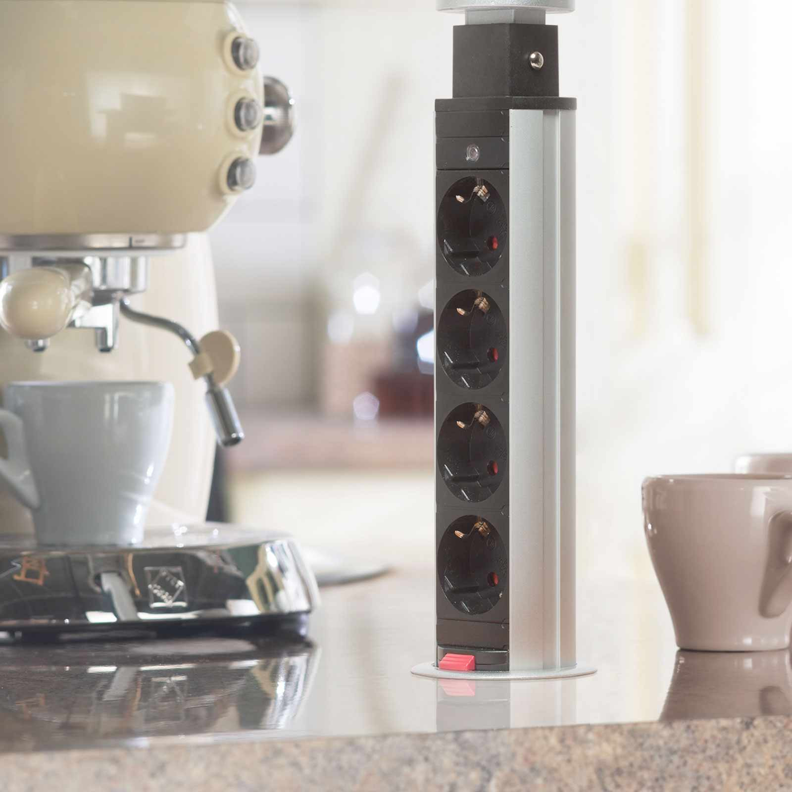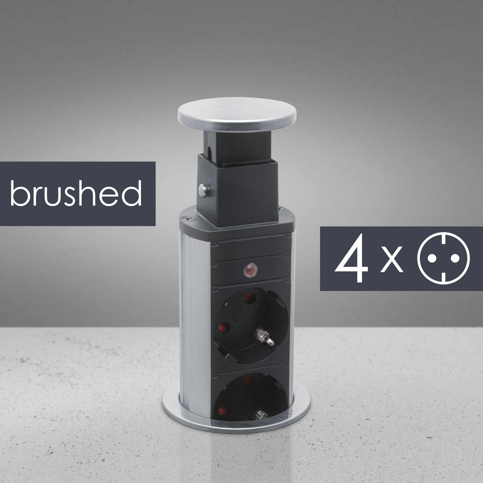 Süllyeszthető elosztó irodai és otthoni felhasználásra, fém házzal, 4 db gyermekvédelemmel ellátott aljzattal. Asztala, bútora legyen mindig elegáns és rendezett, mégis funkcionális. A rejtett elosztó kiváló megoldás lehet ha már például kész konyhával rendelkezik, de nincs elegendő konnektor a kívánt helyen. Ilyenkor falvésés és villamos hálózat bővítés nélkül, remek alternatíva lehet egy rejtett elosztó. Egy mozdulat és máris rendelkezésre áll 4 szabad konnektor. Ideális lehet olyan elektromos eszközökhöz, amit nem folyamatosan használunk, kenyérpirító, vízforraló... Ha használaton kívül vannak, a "töltőoszlop" egy mozdulattal elrejthető, ezzel is megkönnyítve például a takarítást, valamint rendezett, letisztult külsőt ad a helységnek.