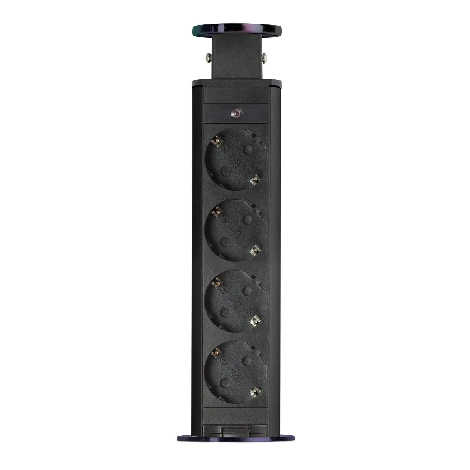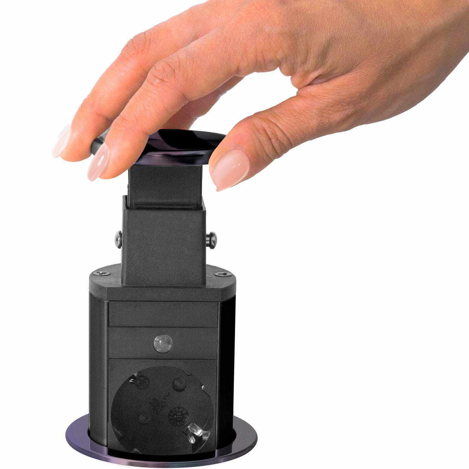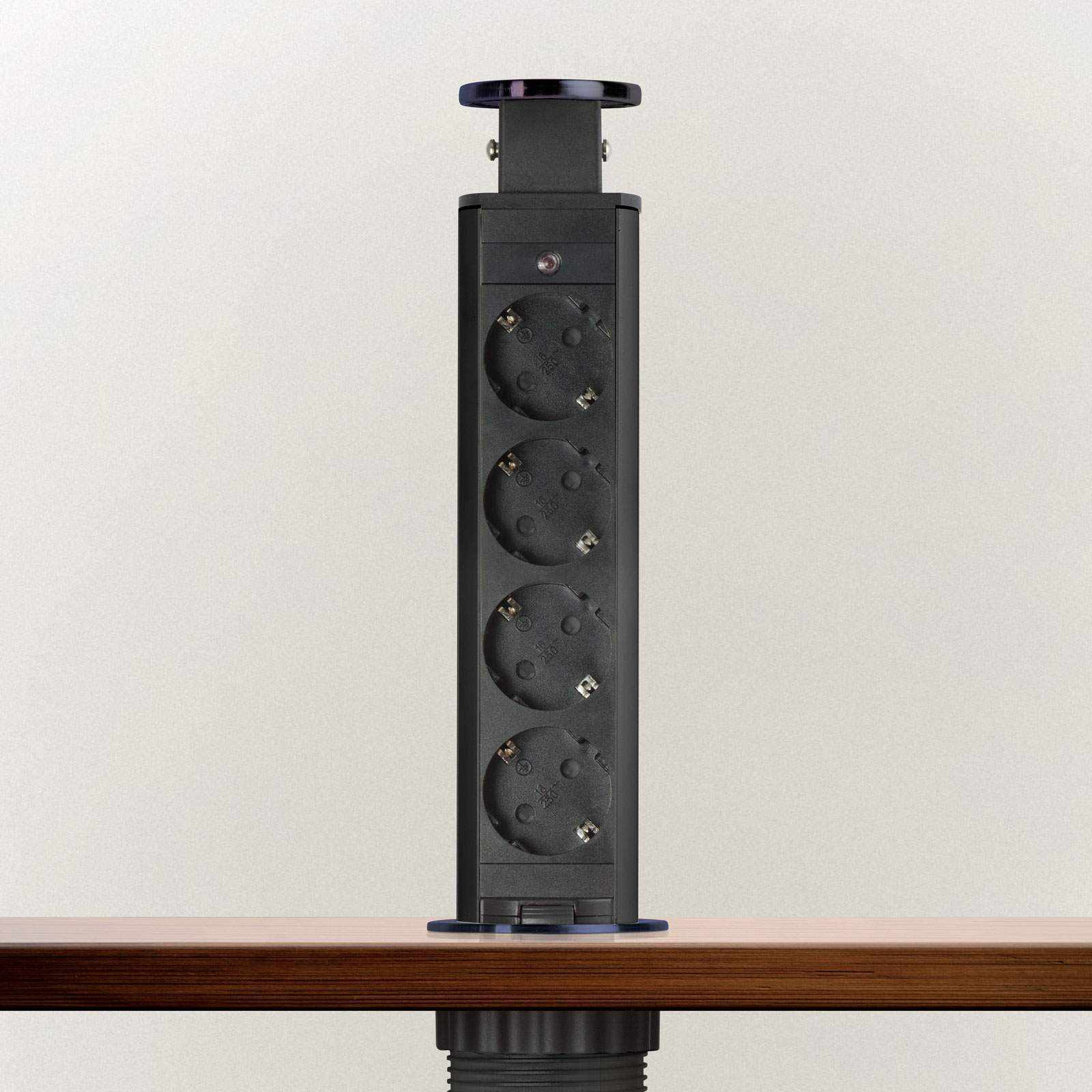 Süllyeszthető elosztó irodai és otthoni felhasználásra, fém házzal, 4 db gyermekvédelemmel ellátott aljzattal. Asztala, bútora legyen mindig elegáns és rendezett, mégis funkcionális. A rejtett elosztó kiváló megoldás lehet ha már például kész konyhával rendelkezik, de nincs elegendő konnektor a kívánt helyen. Ilyenkor falvésés és villamos hálózat bővítés nélkül, remek alternatíva lehet egy rejtett elosztó. Egy mozdulat és máris rendelkezésre áll 4 szabad konnektor. Ideális lehet olyan elektromos eszközökhöz, amit nem folyamatosan használunk, kenyérpirító, vízforraló... Ha használaton kívül vannak, a "töltőoszlop" egy mozdulattal elrejthető, ezzel is megkönnyítve például a takarítást, valamint rendezett, letisztult külsőt ad a helységnek.