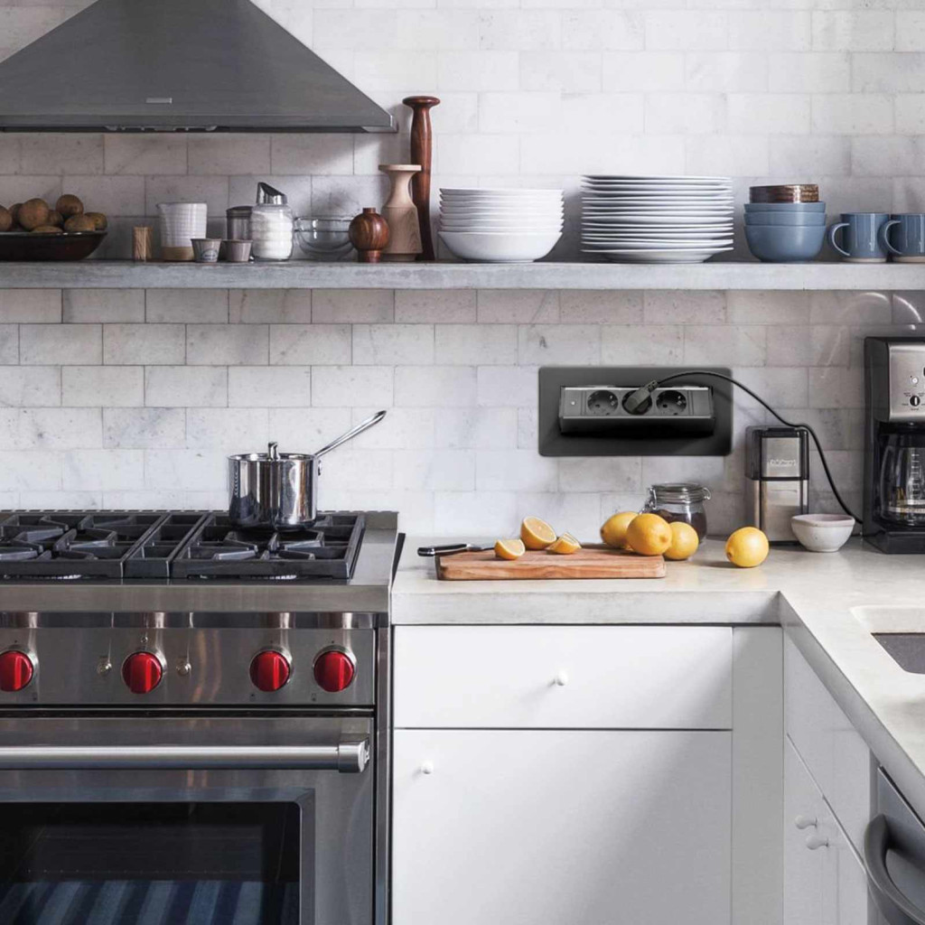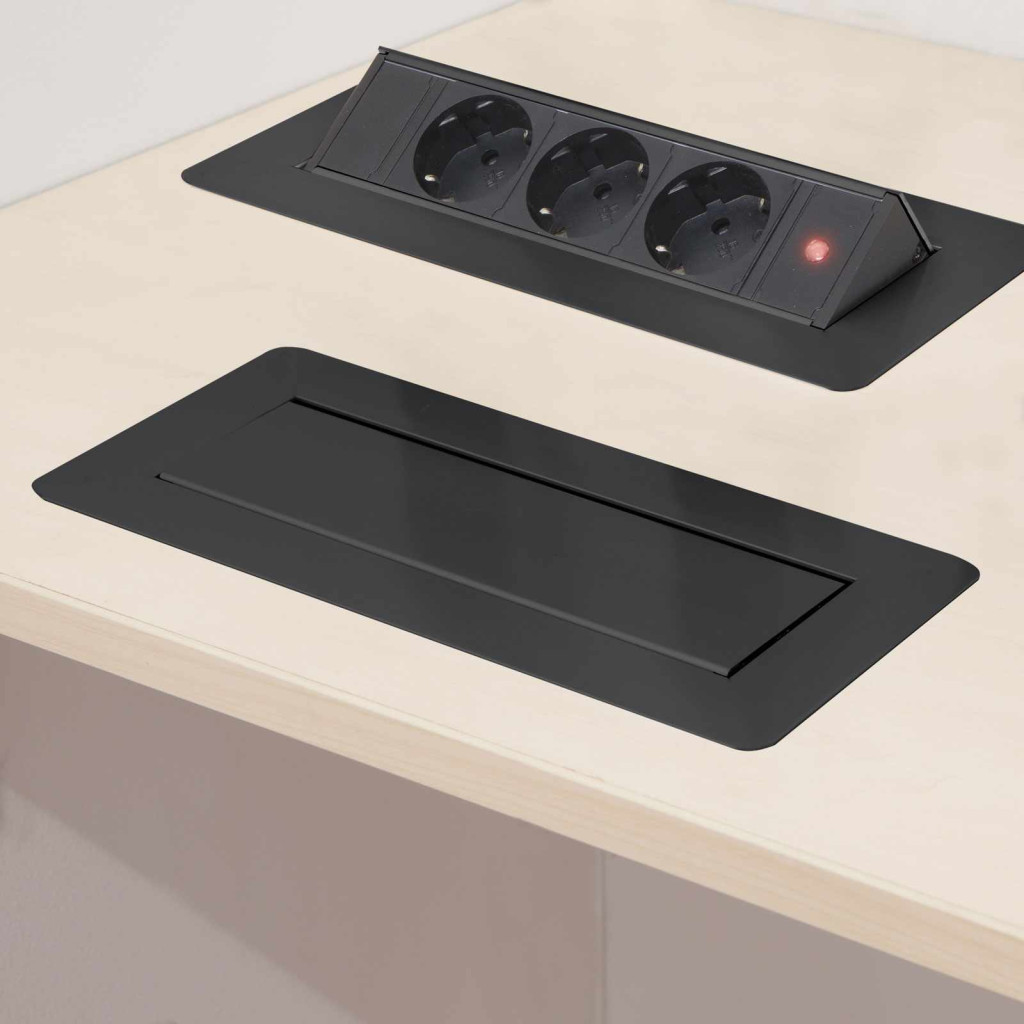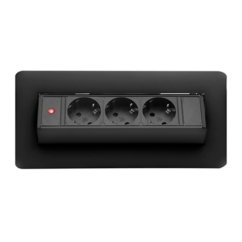 Süllyeszthető elosztó irodai és otthoni felhasználásra, ezüst felülettel, 3 db gyermekvédelemmel ellátott aljzattal. Asztala, bútora legyen mindig elegáns és rendezett, mégis funkcionális. A rejtett elosztó kiváló megoldás lehet ha már például kész konyhával rendelkezik, de nincs elegendő konnektor a kívánt helyen. Ilyenkor falvésés és villamos hálózat bővítés nélkül, remek alternatíva lehet egy rejtett elosztó. Egy mozdulat és máris rendelkezésre áll 3 szabad konnektor. Ideális lehet olyan elektromos eszközökhöz, amit nem folyamatosan használunk, kenyérpirító, vízforraló... Ha használaton kívül vannak, az "flip-up" elosztó egy mozdulattal elrejthető, ezzel is megkönnyítve például a takarítást, valamint rendezett, letisztult külsőt ad a helységnek.