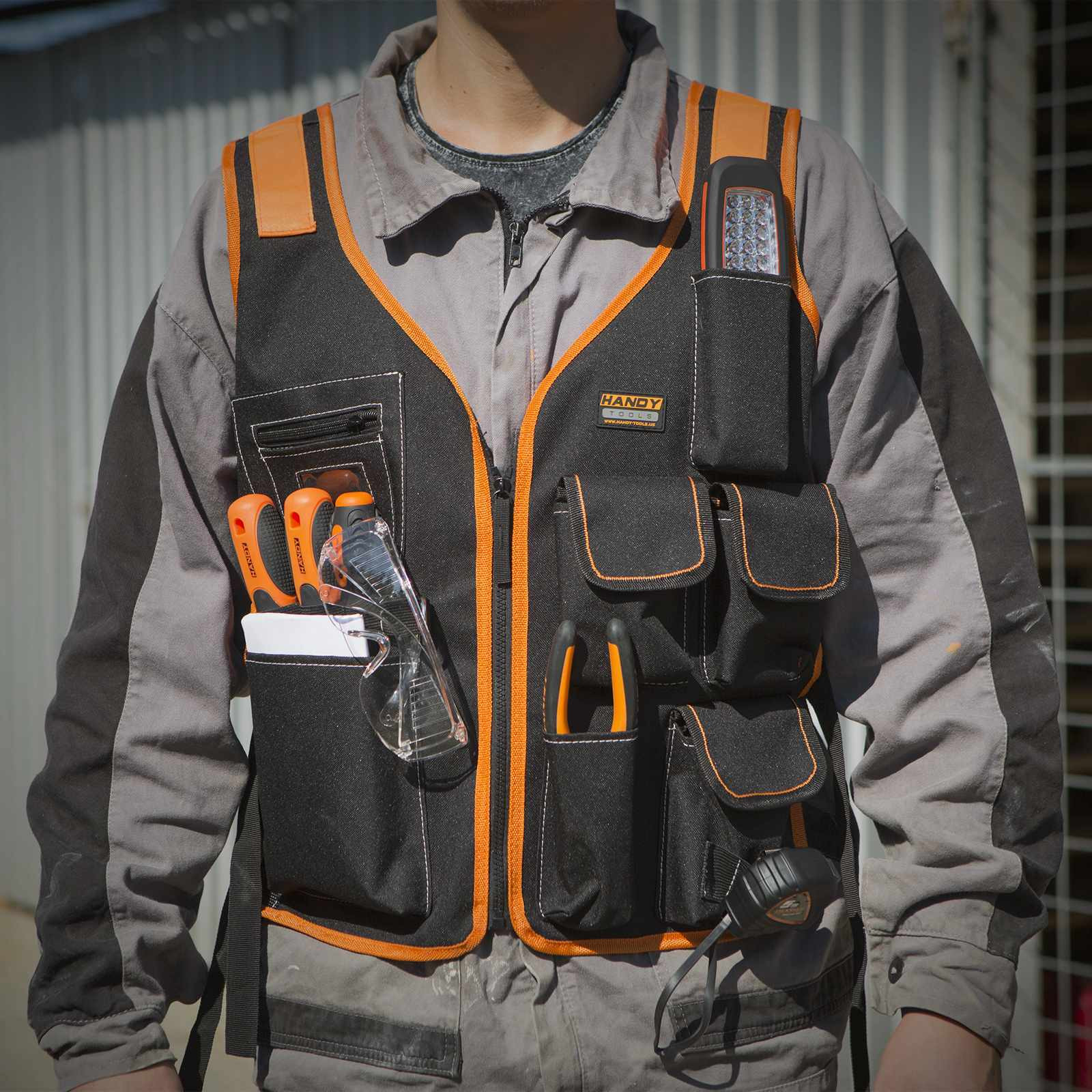 Anyagfelhasználása és kialakítása miatt meglehetősen ellenálló. A hosszú élettartam érdekében az igénybevett pontokon megerősítéssel, multifunkcionális zsebekkel. A mellény számos tárolóhellyel ellátott, többek között 7 zsebbel - melyből 3 zsebfedővel, 1 pedig cipzárral szerelt - igazolvány tartóval, akasztófülekkel. Extra erős igénybevételre készült szerelőmellény. Oldalain 2-2 szabályozható pánttal állítható be a kívánt méret, elején cipzárral záródik.