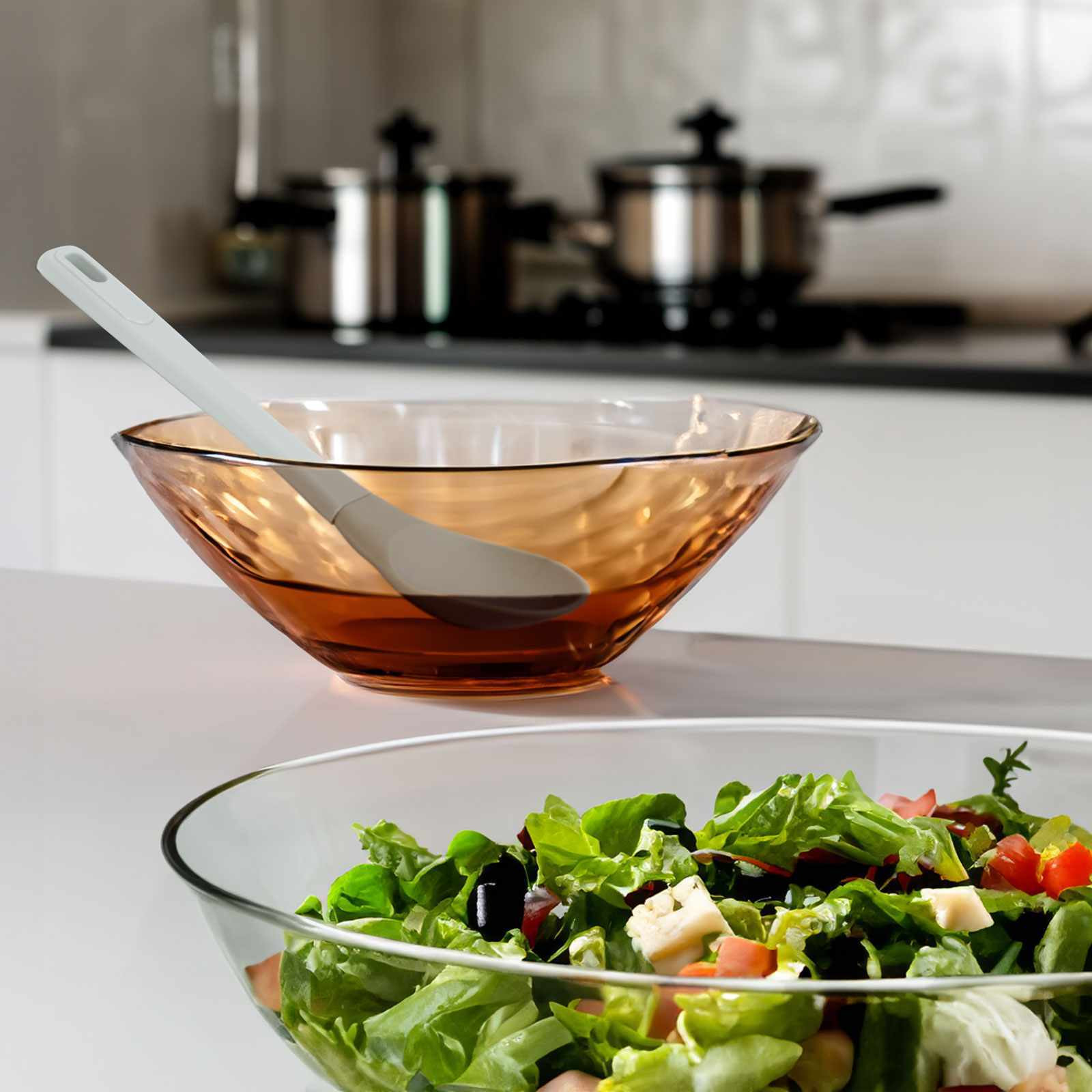 Ez a konyhai szilikon kanál a konyhai tevékenységeit még hatékonyabbá és élvezetesebbé teszi. A könnyű és kényelmes fogású műanyag nyél kiválóan egyensúlyoz a kezében, lehetővé téve a pontos és sima mozdulatokat. A szilikon fej puha, mégis tartós, így ideális választás a keveréshez.A szilikon anyag hőálló és nem karcolja meg az edények felületét, így bátran használhatja főzés közben is, anélkül, hogy aggódna a sérülések miatt. A kanál feje könnyen hajlítható és alkalmazkodik az edények formájához, lehetővé téve az esetlegesen odatapadt ételmaradványok eltávolítását is. Ez a konyhai szilikon kanál nemcsak funkcionális, hanem stílusos is. A modern design és a könnyen tisztítható anyag ideális választás a konyhai eszközkészlet kiegészítéséhez.